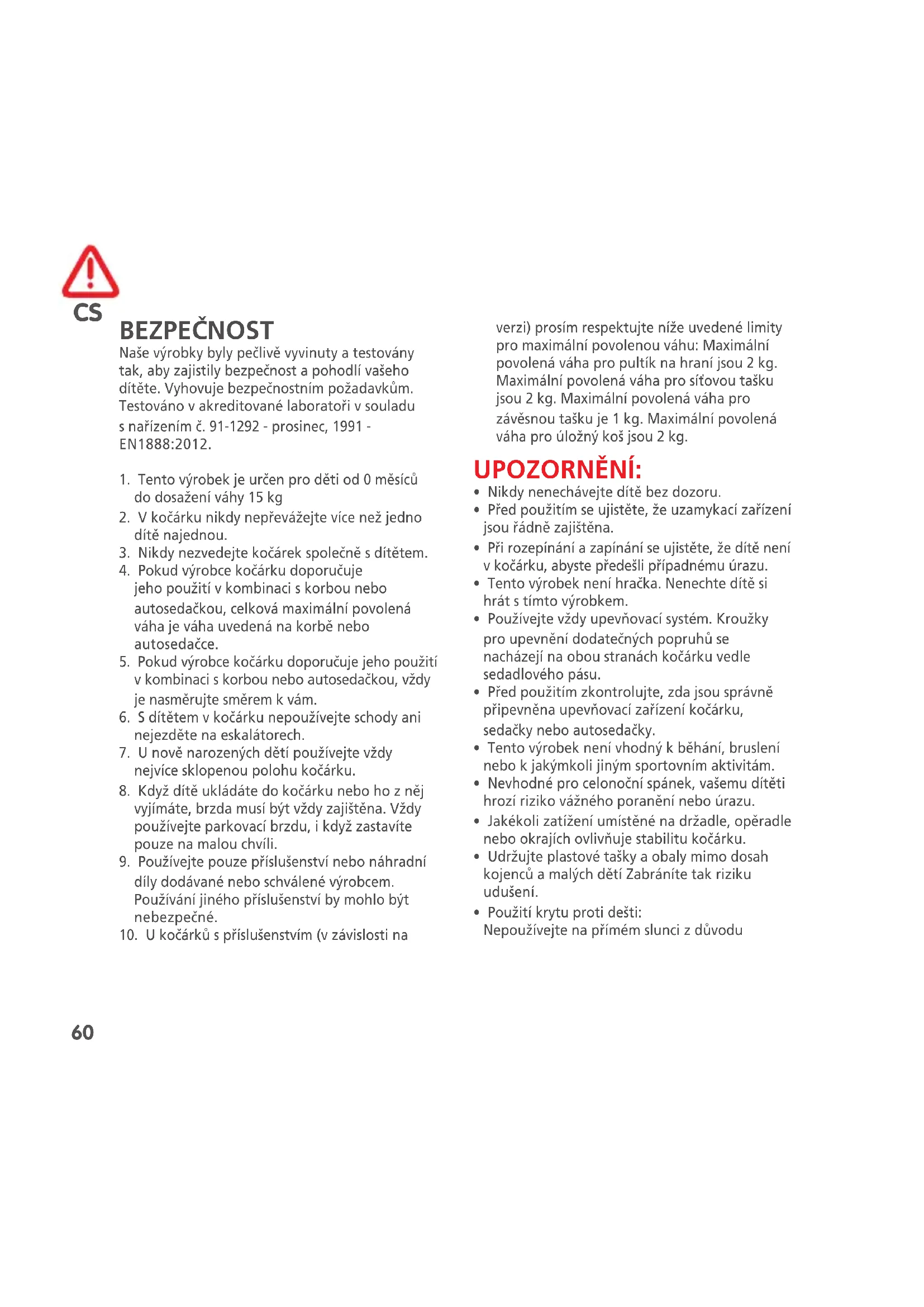 BEZPEČNOST Naše výrobky byly pečlivě vyvinuty a testovány tak, aby zajistily bezpečnost a pohodlí vašeho dítěte. Vyhovuje bezpečnostním požadavkům. Testováno v akreditované laboratoři v souladu s nařízením č. 91-1292 - prosinec, 1991 - EN1888:2012.