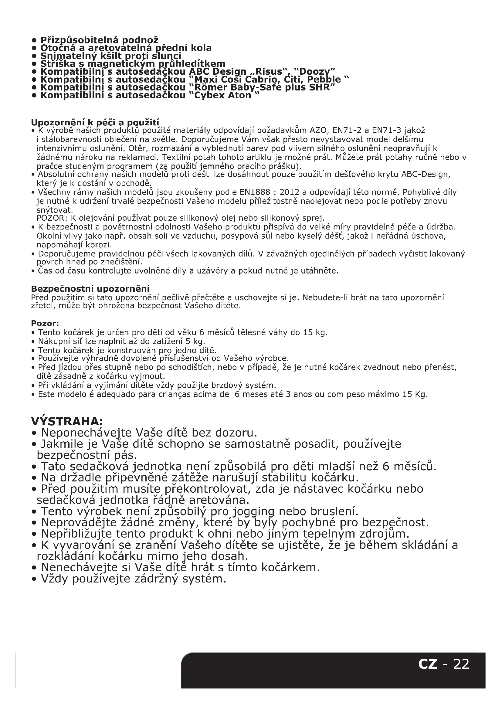 - Absolutní ochrany našich modelů proti dešti lze dosáhnout pouze použitím dešťového krytu ABC-Design, který je k dostání v obchodě.