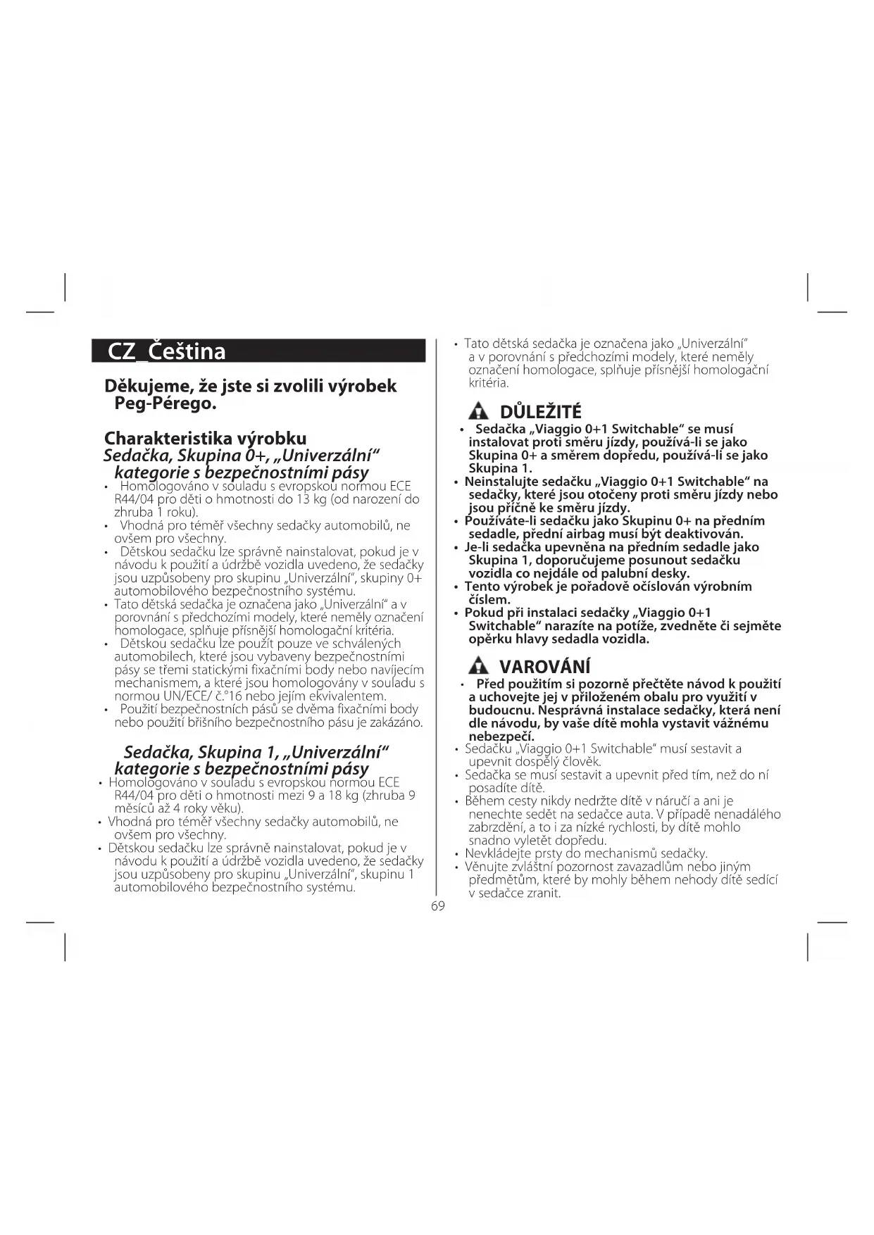 NÁVOD K OBSLUZE Viaggio 0+1 Switchable PEG PEREGO