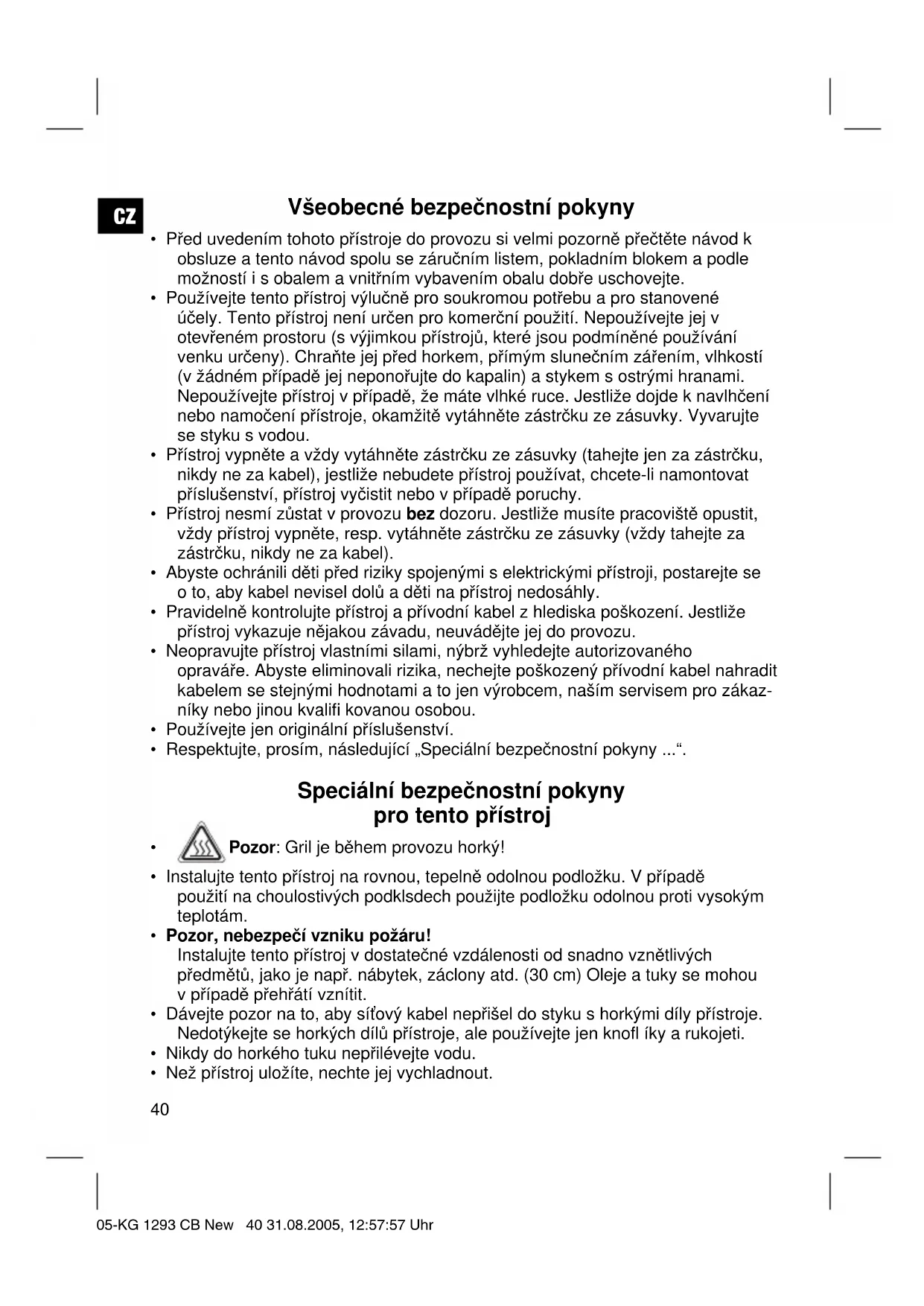 - Než přístroj uložíte, nechte jej vychladnout. 05-KG 1293 CB New 40 31.08.2005, 12:57:57 UhrCZ