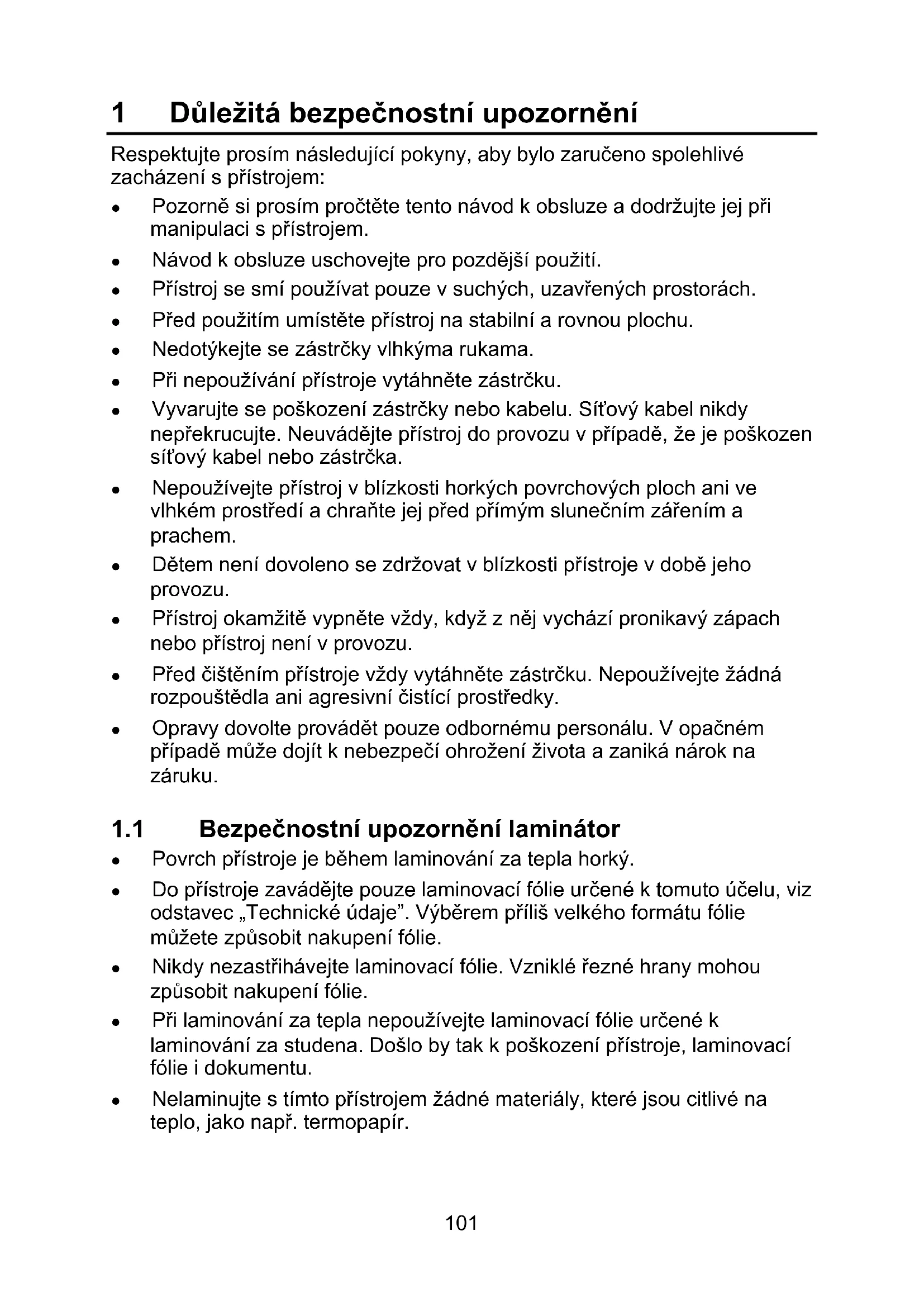 1.1 Bezpečnostní upozornění laminátor ...................................... 101