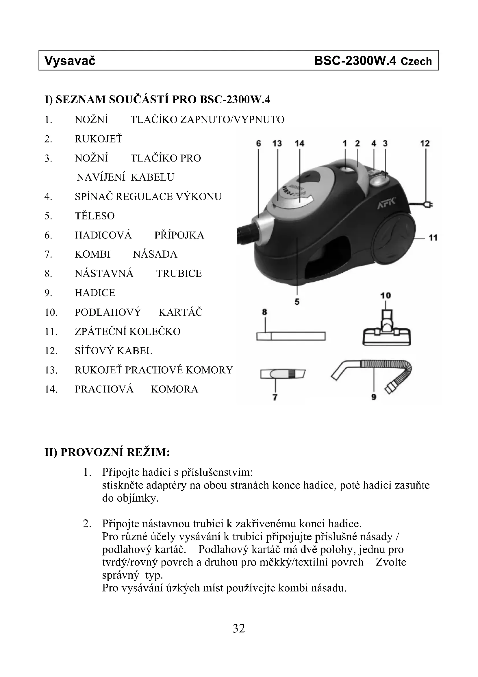 BSC2300W.4 - Vysavač AFK - Bezplatný návod k obsluze