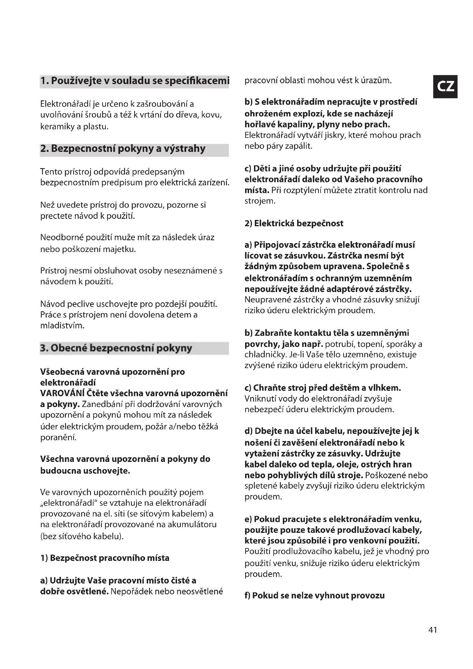 b) S elektrónáradim nepracujte v prostředí ohroženémexplozi, kde se nacházeji hořlavé kapaliny, plyny nebo prach.
