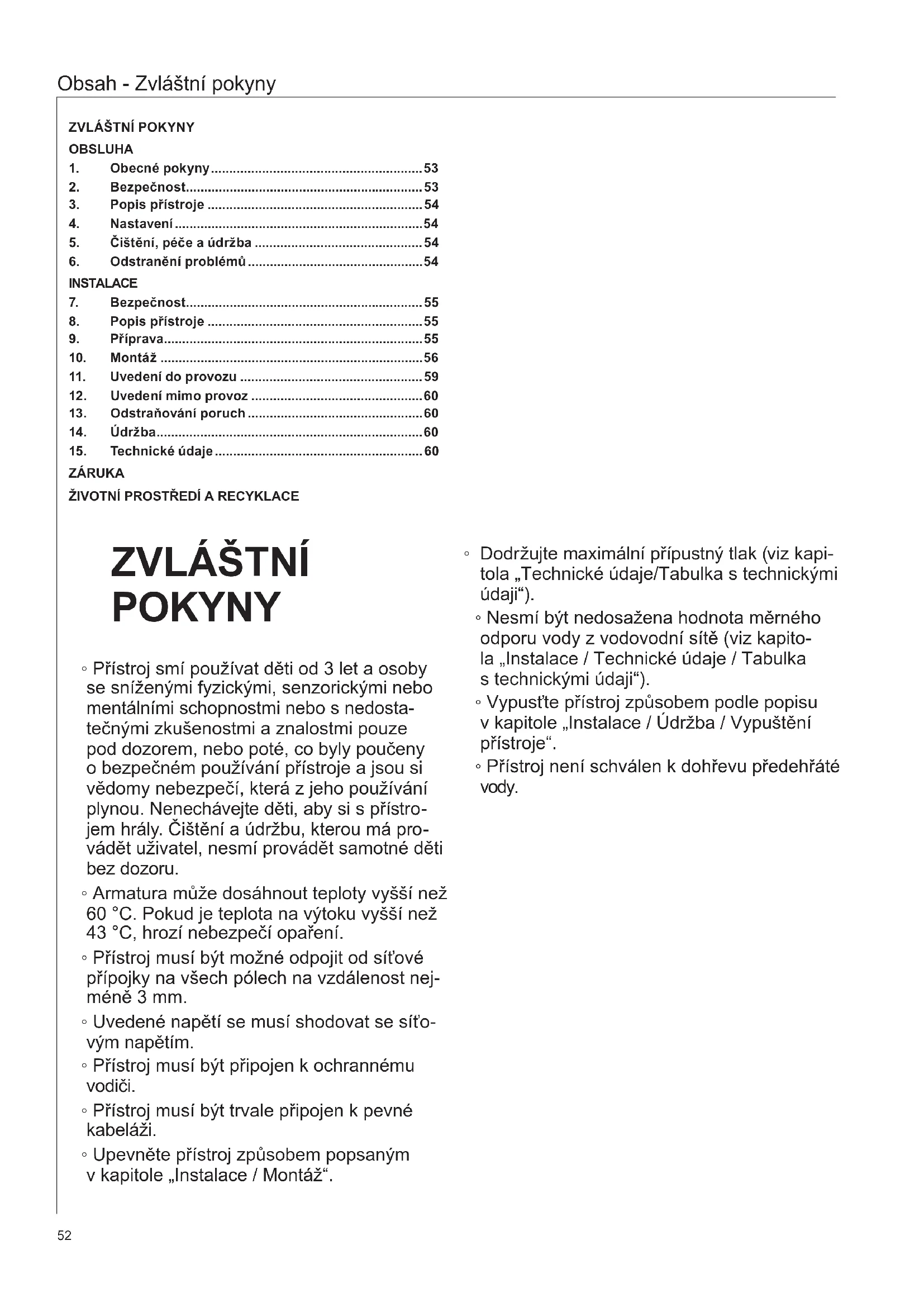 nale voorschriften.52 Obsah - Zvláštní pokyny