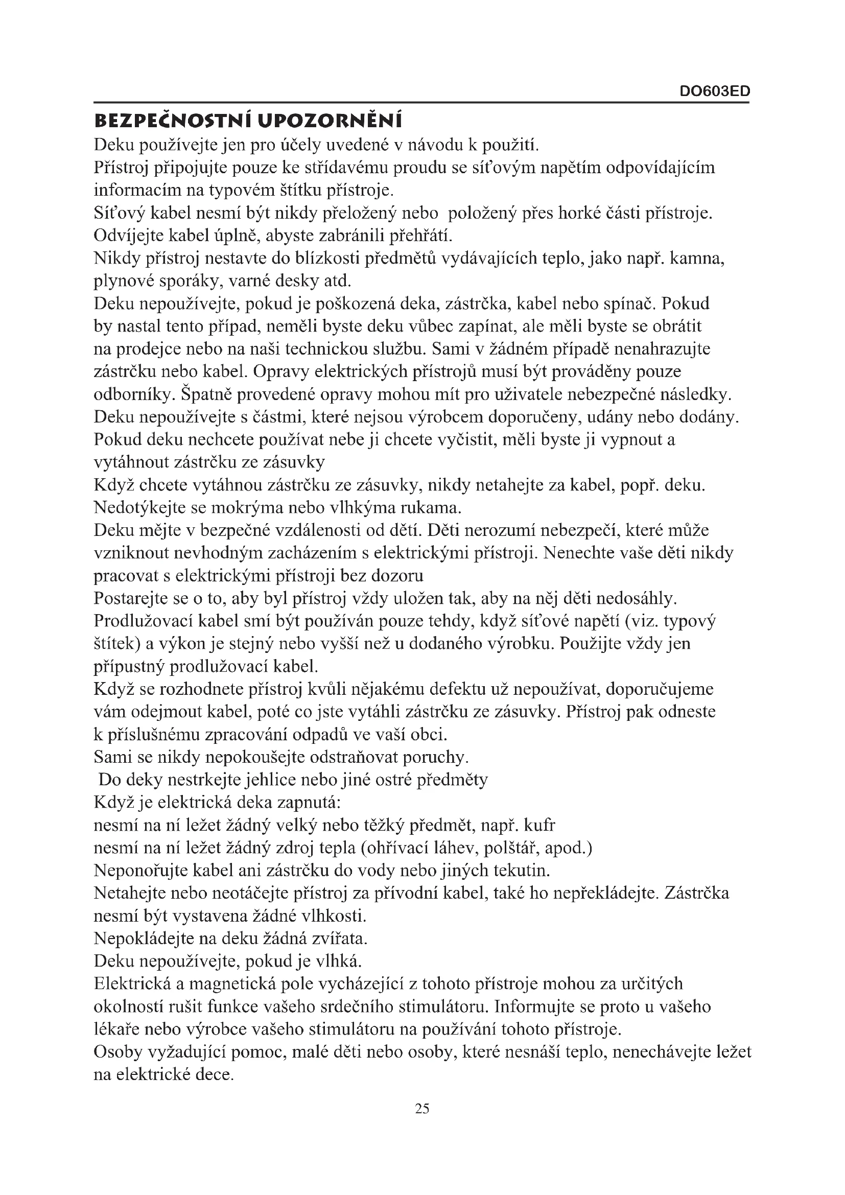 DO 603 ED - Vyhřívací polštář DOMO - Bezplatný návod k obsluze
