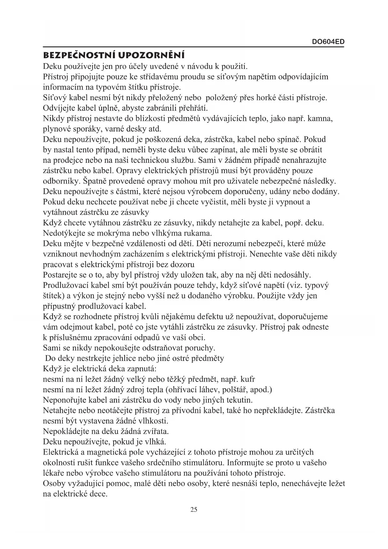 NÁVOD K OBSLUZE DO 604 ED DOMO