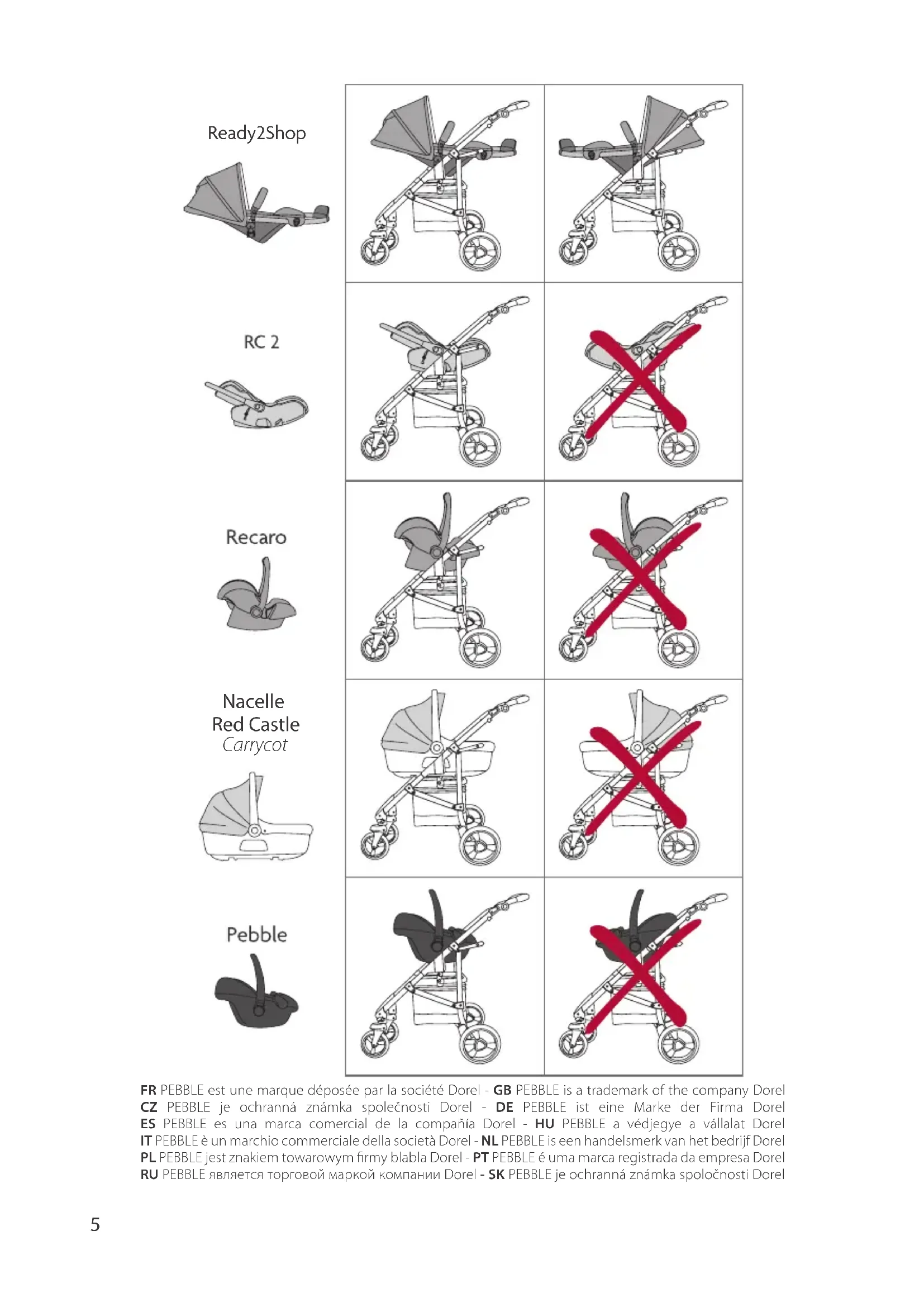 - Od narození můžete kočárek používat v kombinaci s autosedačkou RED CASTLE/RECARO 0-13kg NEBO s autosedačkou RC 2 0-9kg NEBO s autosedačkou PEBBLE 0-13kg NEBO s RED CASTLE korbičkou (od narození do 9kg).