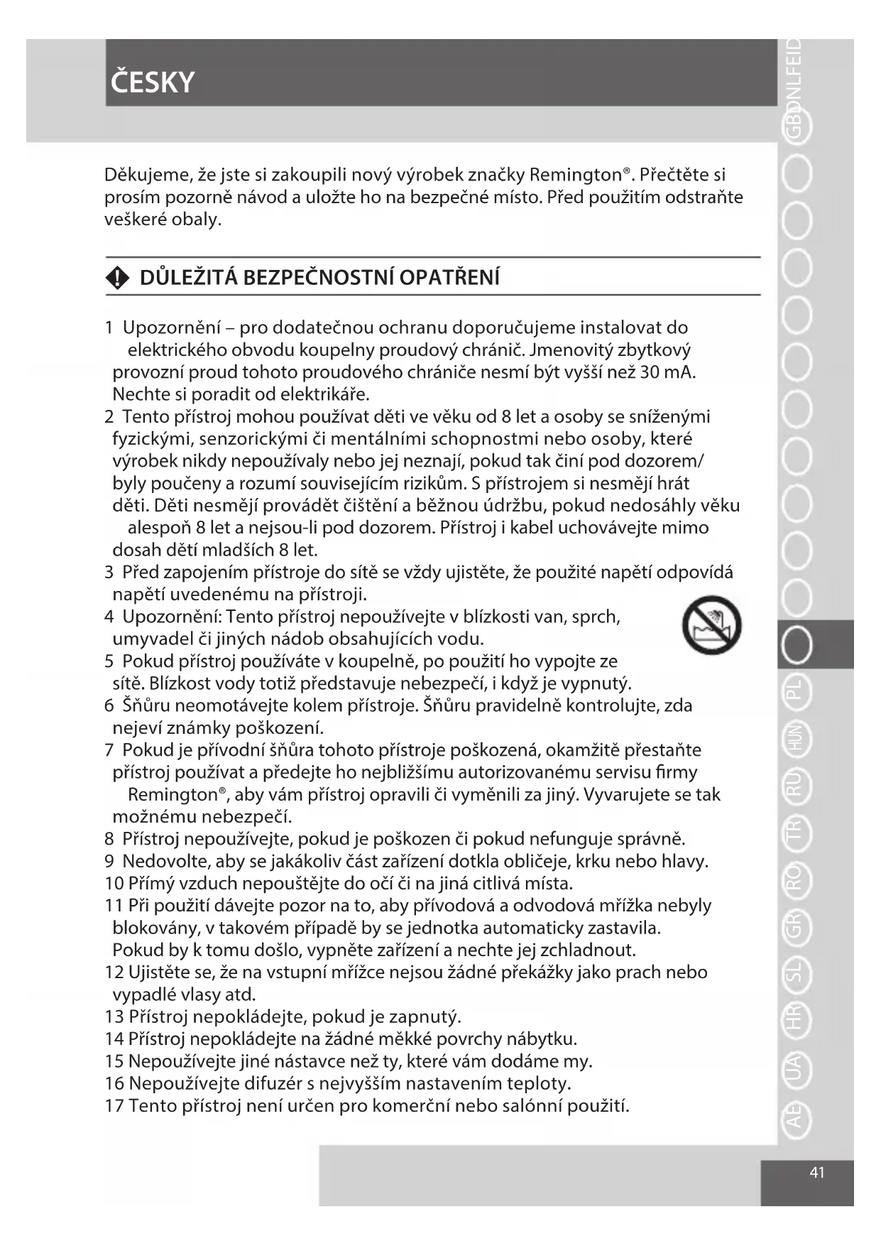 Dekujeme, ze jste si zakoupili novy vyrobek značky Remington. Přečte si prosim pozorně námod a uložte ho na bezpečné mistro. Préd použitím odstraťe veškeré obaly.