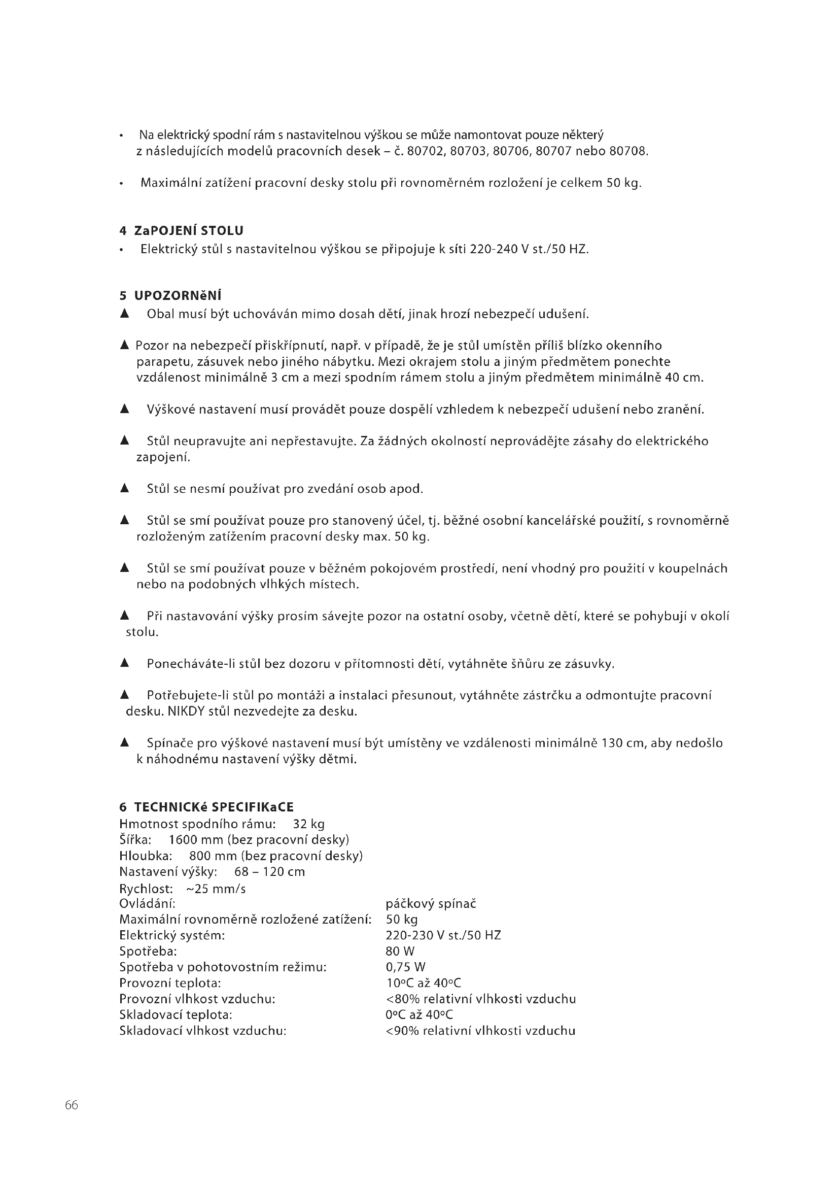 - Elektrickýstůlsnastavitelnouvýškoujeurčenproveškerékancelářsképoužitívběžném pokojovémprostředí.66
