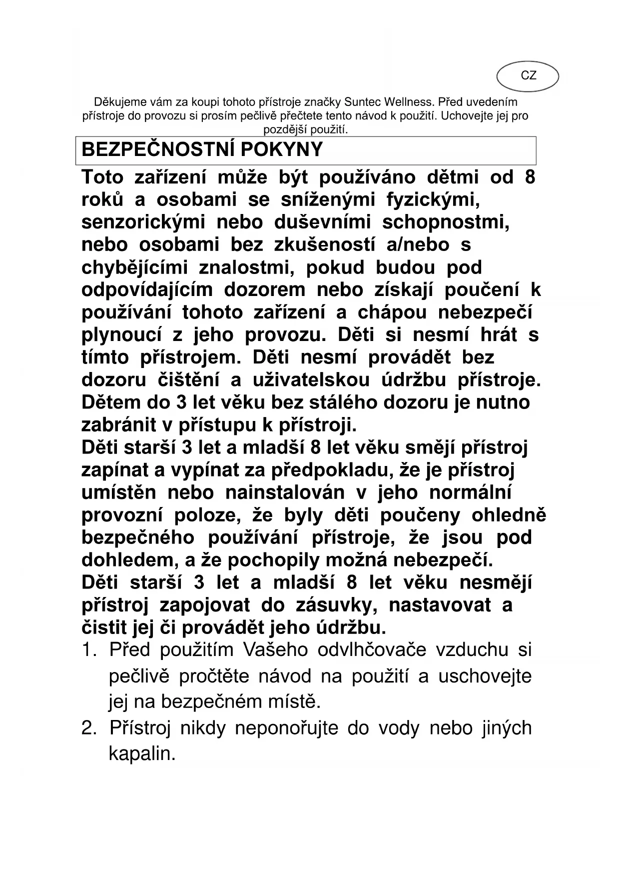 DryFix SUNTEC WELLNESS GMBH / HOLZSTRASSE 2 / 40 221 DÜSSELDORF / GERMANYDěkujeme vám za koupi tohoto přístroje značky Suntec Wellness. Před uvedením přístroje do provozu si prosím pečlivě přečtete tento návod k použití. Uchovejte jej pro pozdější použití.