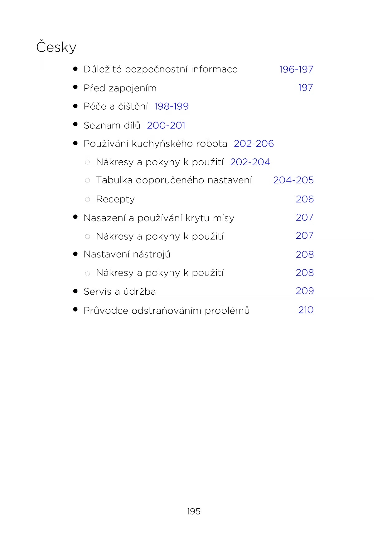 P¡esvĕdčte se, že vaše elektrická zásuvka odpovídá zásuvce uvedené na spodní stranĕ přístroje. VAROVÁNÍ: TENTO SPOTŘEBIČ MUSÍ BÝT UZEMNĚNÝ. Tento spotřebič splňuje nařízení ES č. 1935/2004 o materiálech a předmětech určených pro styk s potravinami.198 Péče a čištění