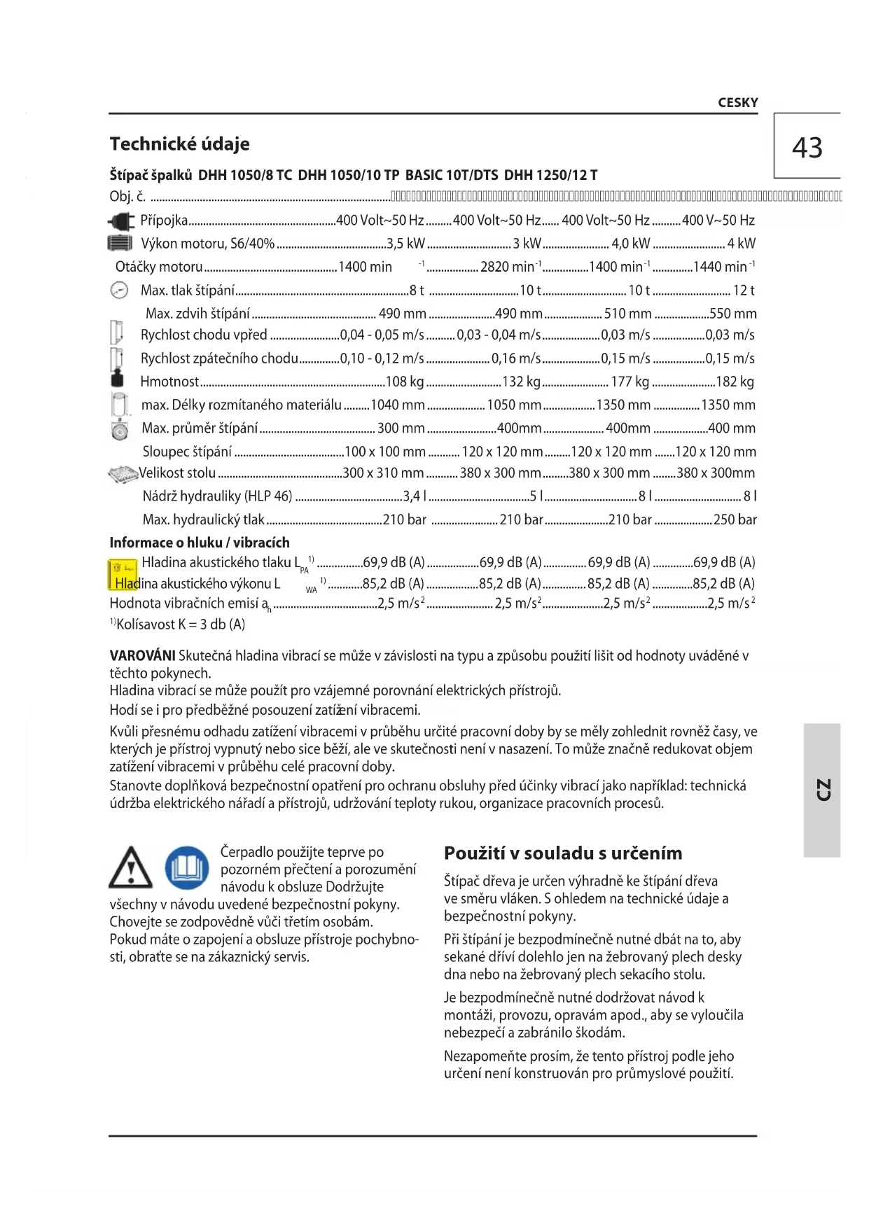 CESKY Před spuštěnám stroje si pečlivě pročtěte návod k používání.