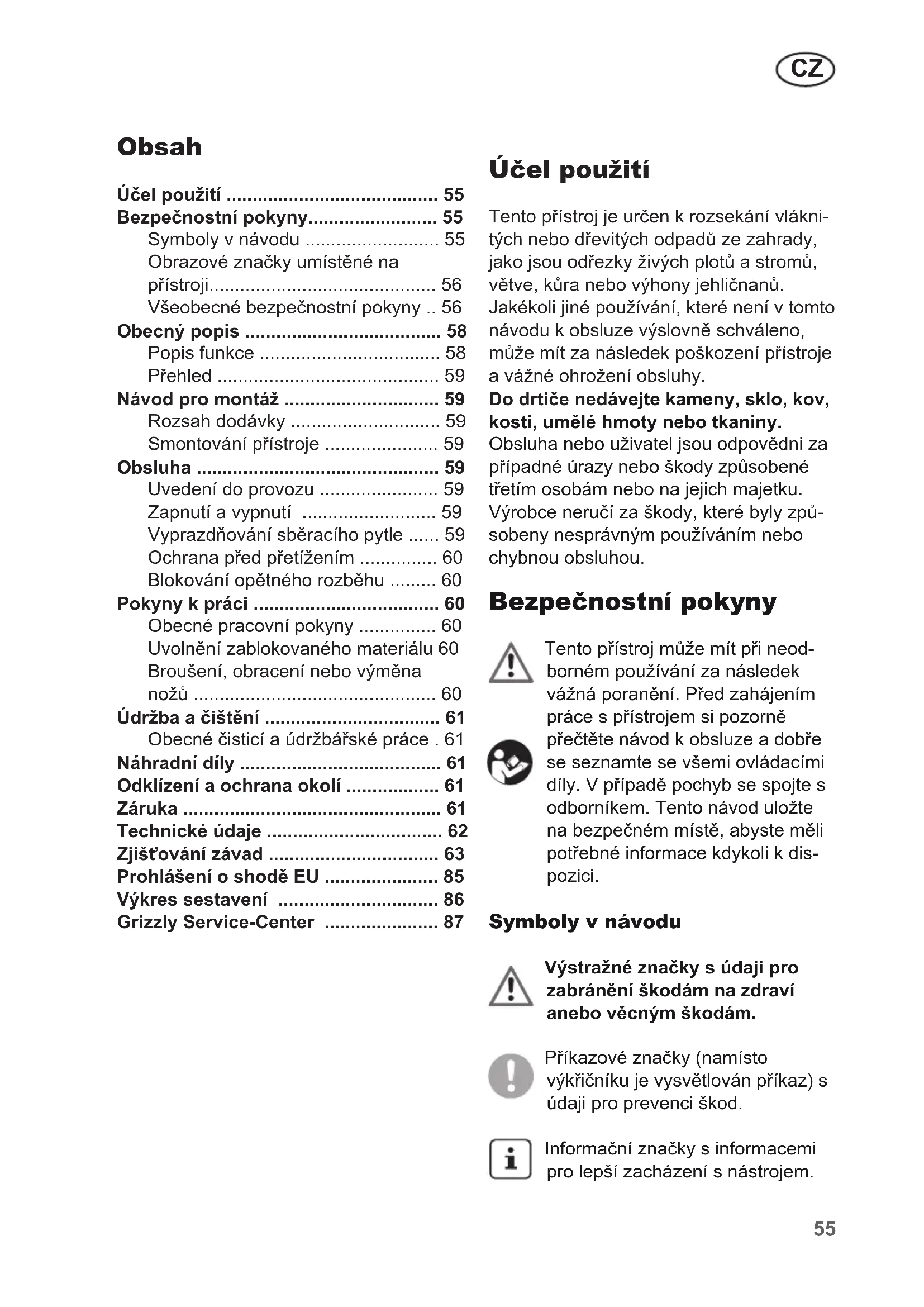 Symboly v návodu 55