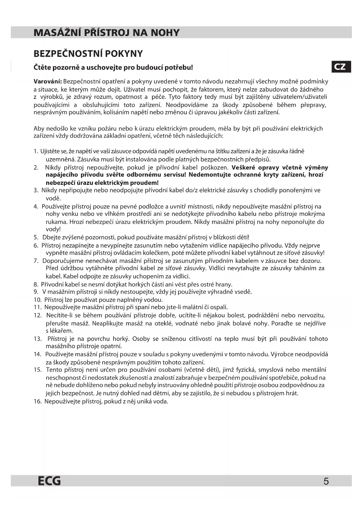 MN 103 - Koupel nohou ECG - Bezplatný návod k obsluze