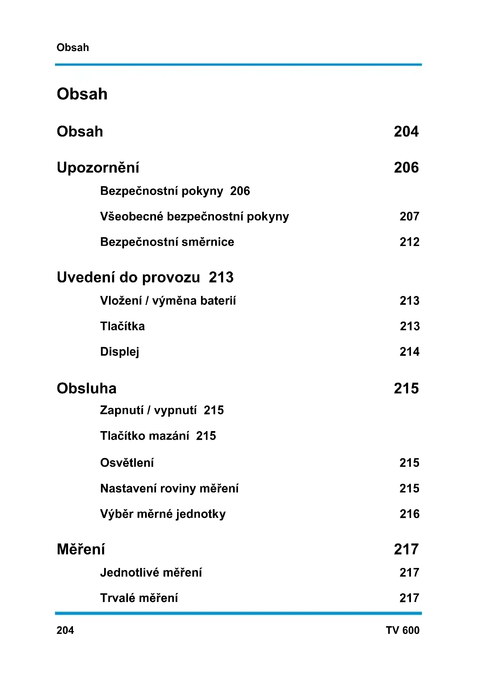 TV 600 - Měřič vzdálenosti Testboy - Bezplatný návod k obsluze