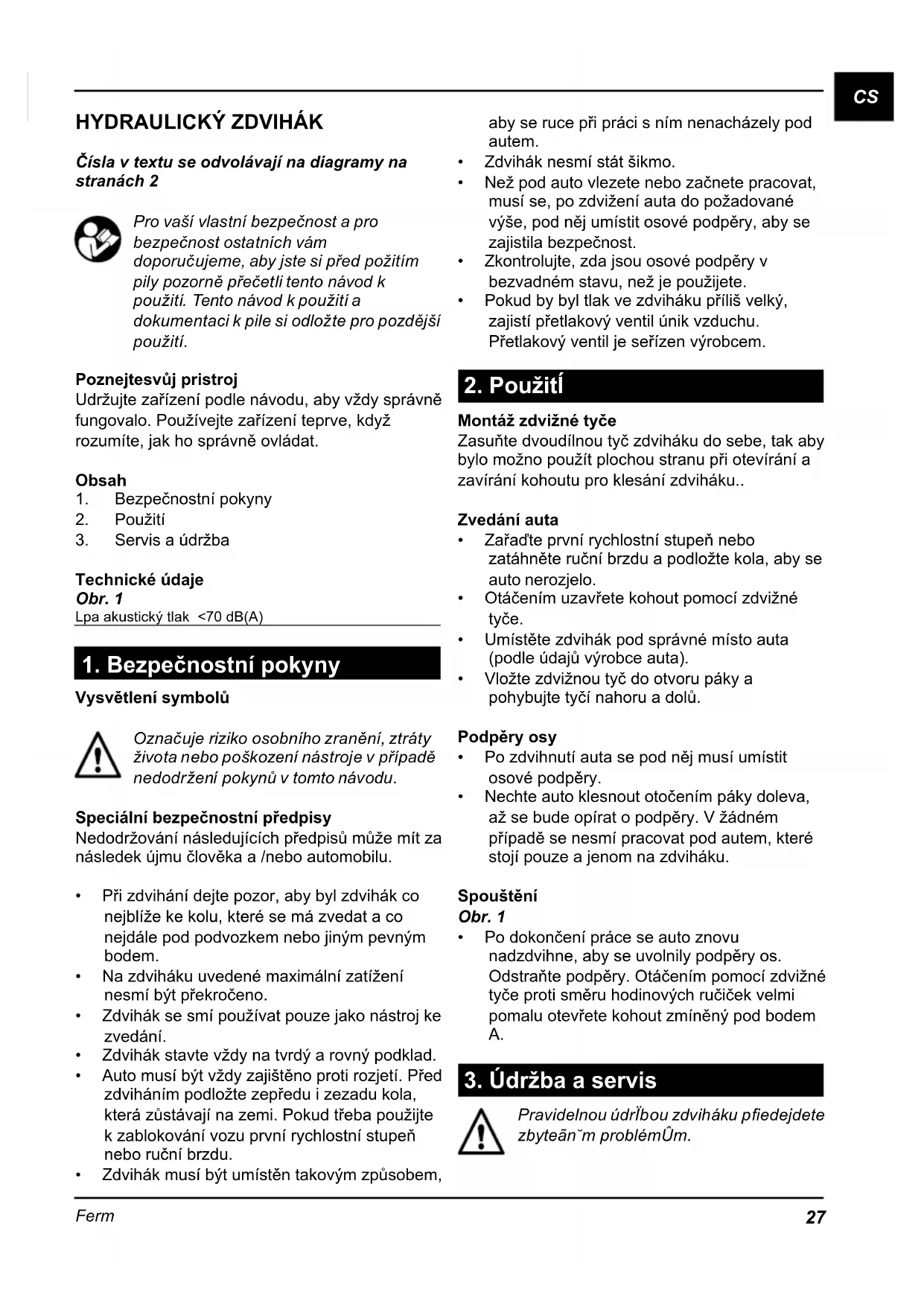 JBM1001 - Zvedák Ferm - Bezplatný návod k obsluze