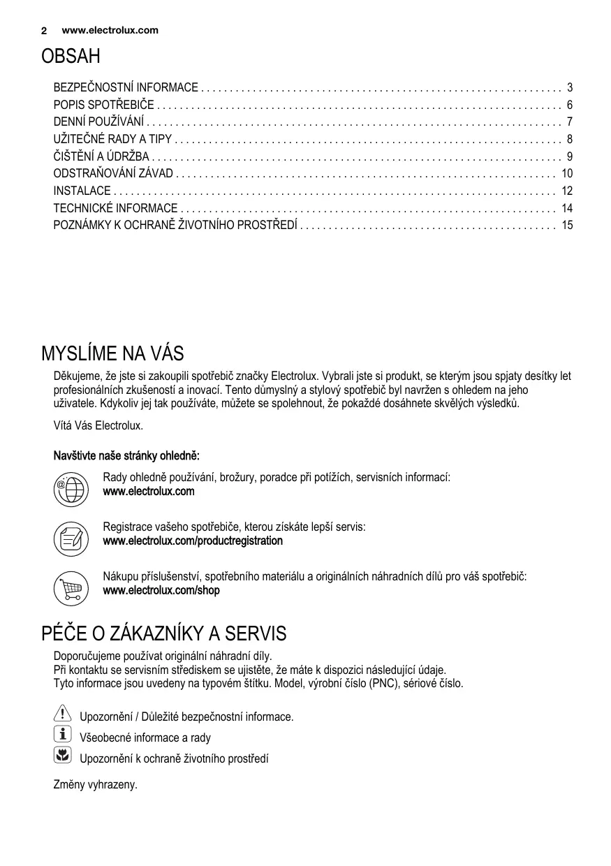Dekujeme, ze jste si zakoupili spotbreic značky Electrolux. Vybrali jste si produkt, se kterym jsou spjaty desitky let professionlänich zkušenosti a inovaci. Tento dumyslný a stylový spotbreic byl navrzen s ohledem na jeho uživatele. Kdykoliv jej tak použivate, muzete se spelehnout, ze pokaždé dosáhnete skvělych vysledkú.