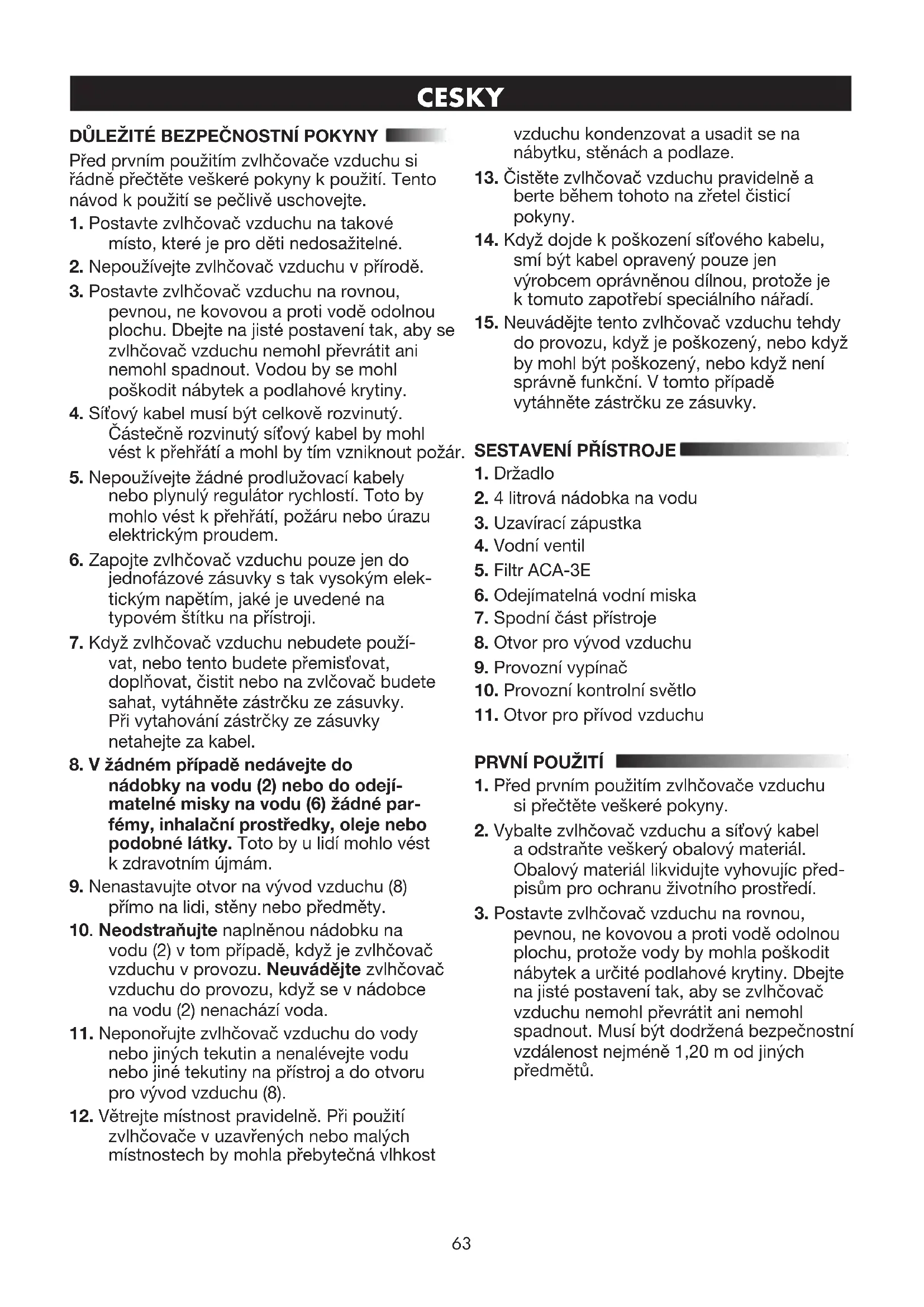 15. Neuvádějte tento zvlhčovač vzduchu tehdy