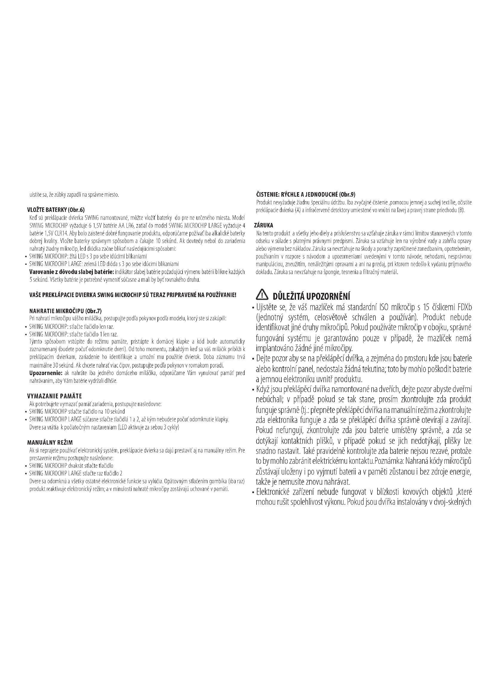 - V případě špatného fungování výrobku nebo zpožděného rozeznání mikročipu se doporučuje vynulovat dveře tím, že se baterie odeberou a znovu vloží.