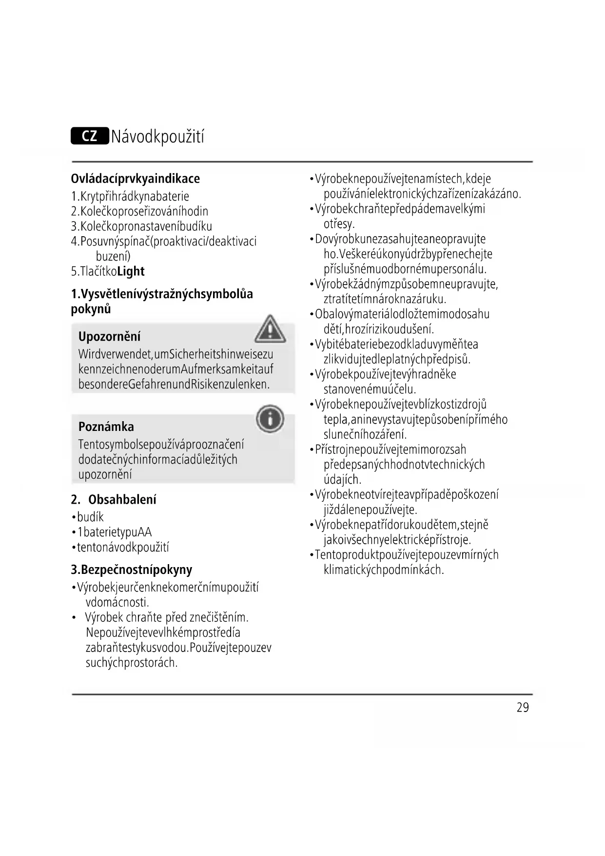 1. Vysvětlení výstražných symbolů a