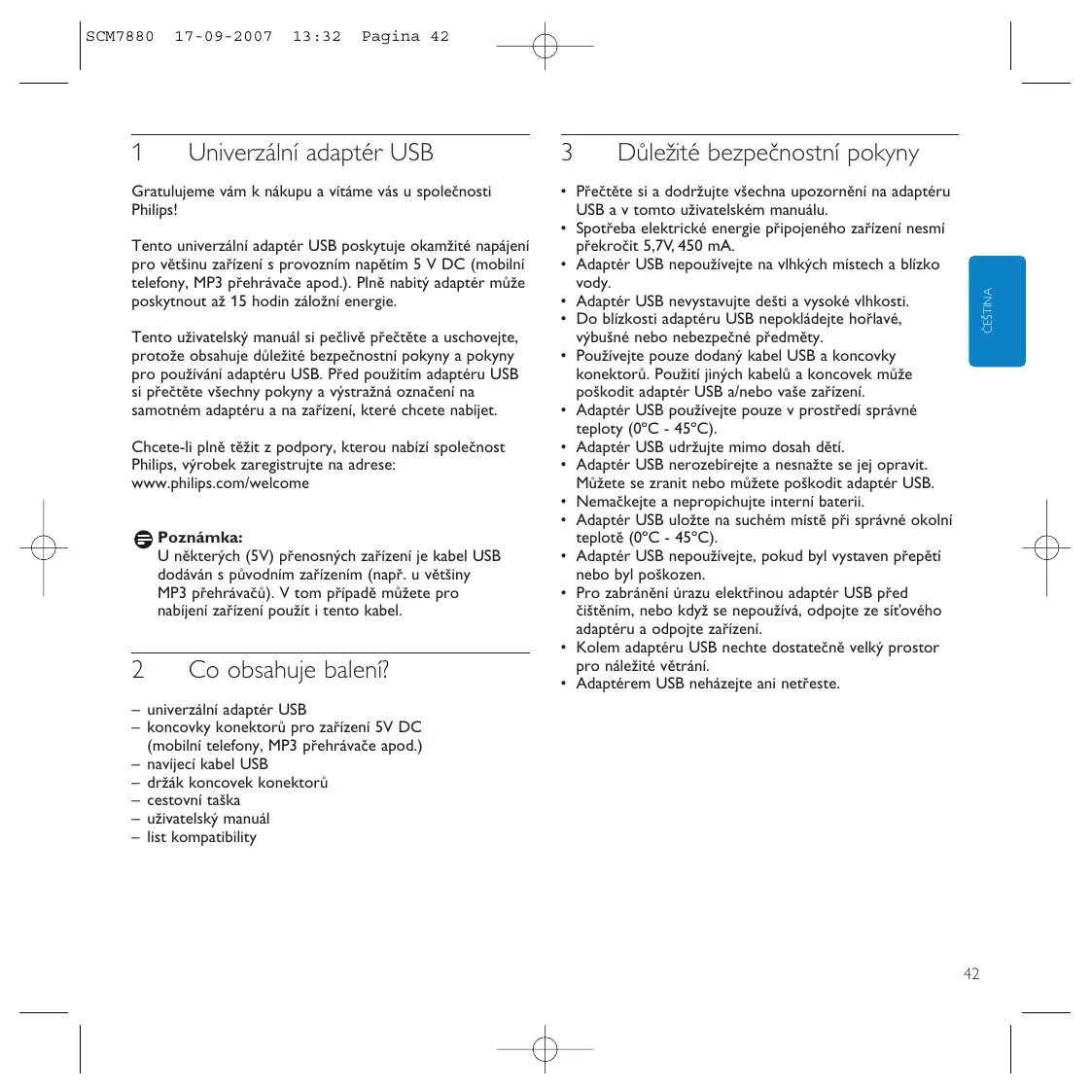 - Přěctěte si a dodržujte vsechna upozorněni na adapérů USB a v totom uživatelském manuál.