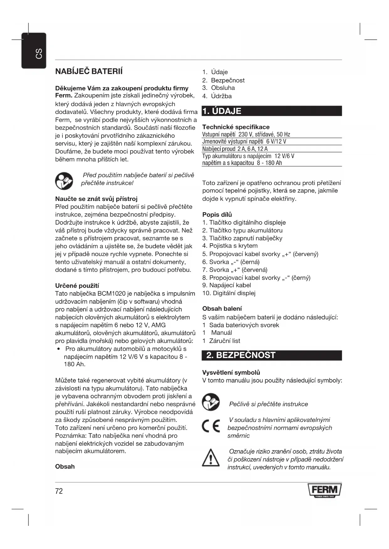NÁVOD K OBSLUZE BCM1020 Ferm