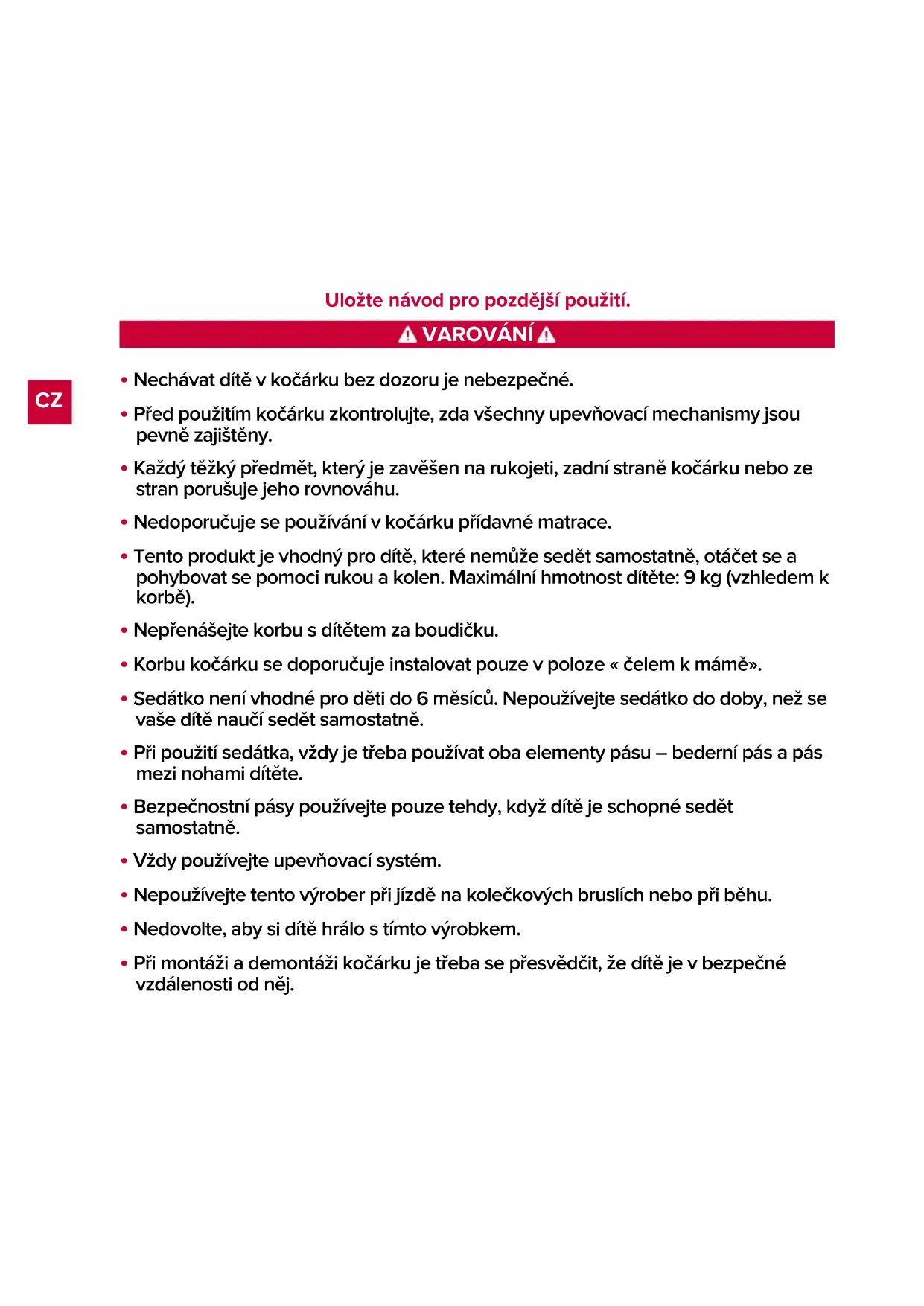 - Při montáži a demontáži kočárku je třeba se přesvědčit, že dítě je v bezpečné vzdálenosti od něj. VAROVÁNÍ CZCZ