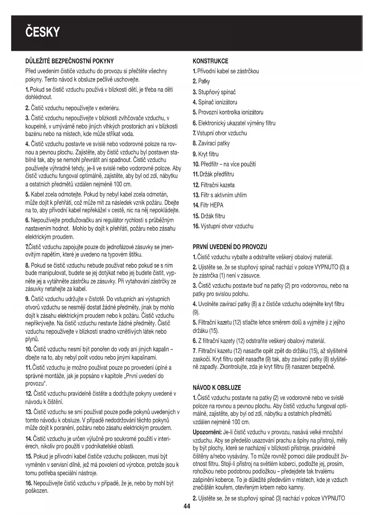 11. Čistič vzduchu je možno používat pouze po provedení úplné a