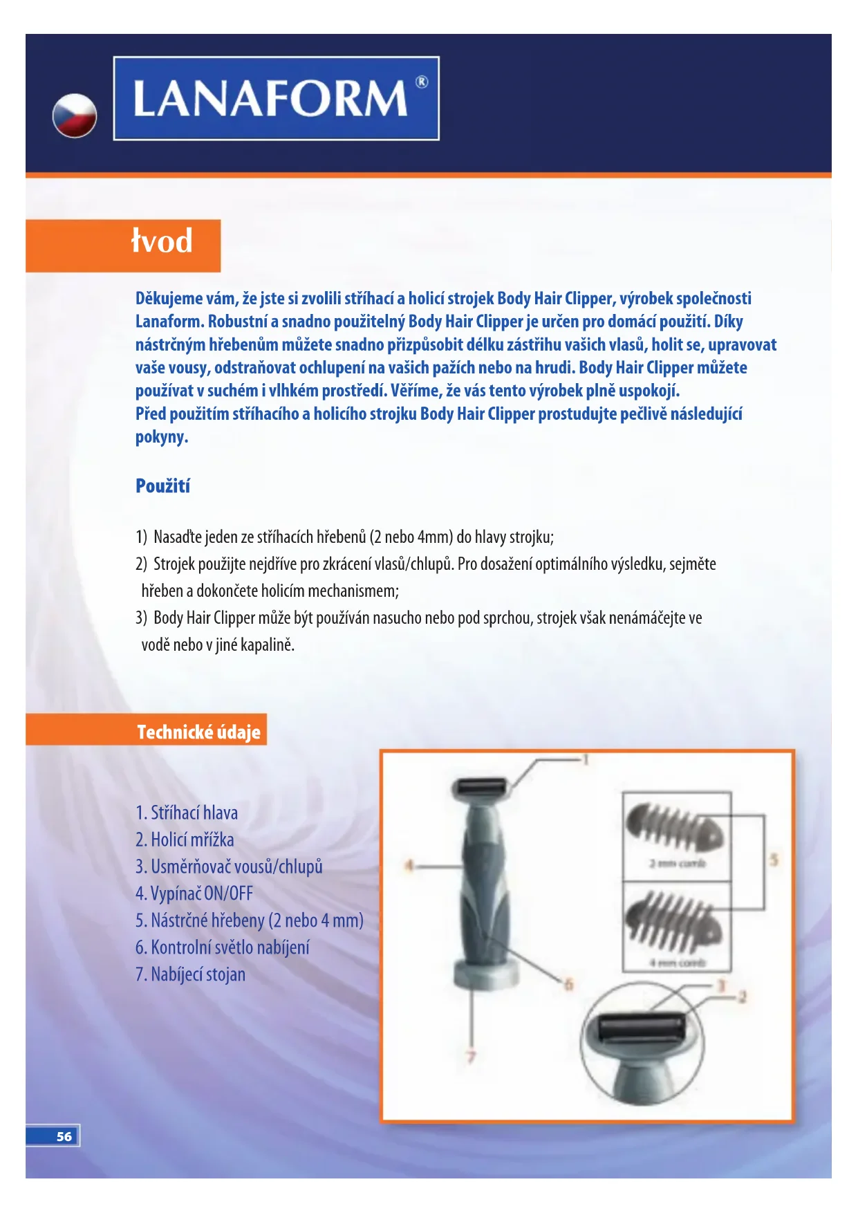 Body Hair Clipper - Tělový zastřihovač LANAFORM - Bezplatný návod k obsluze