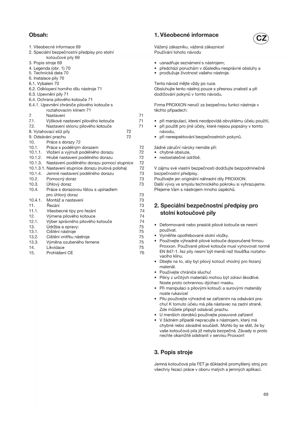 - Speciñí bezpečnostní prédispíy pro stolní kotoučové pily 69