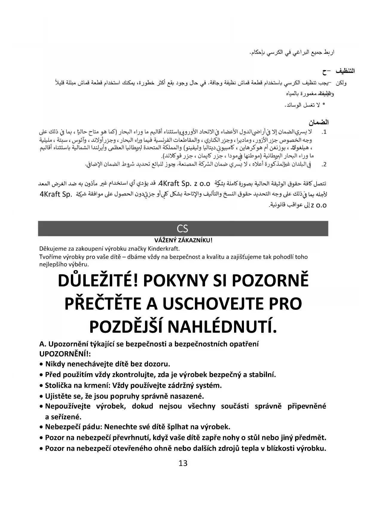 - Üplny obsah záručnich podmínek je k disposzici na webovych stránkách WWW.KINDERKRAFT.COMhttp://WWW.KINDERKRAFT.COM