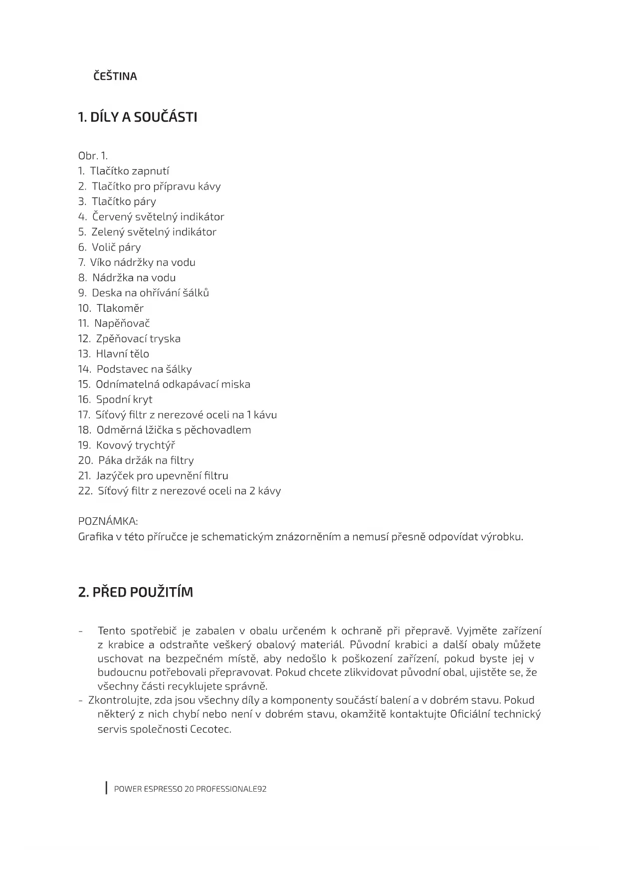 NÁVOD K OBSLUZE Power Espresso 20 CECOTEC