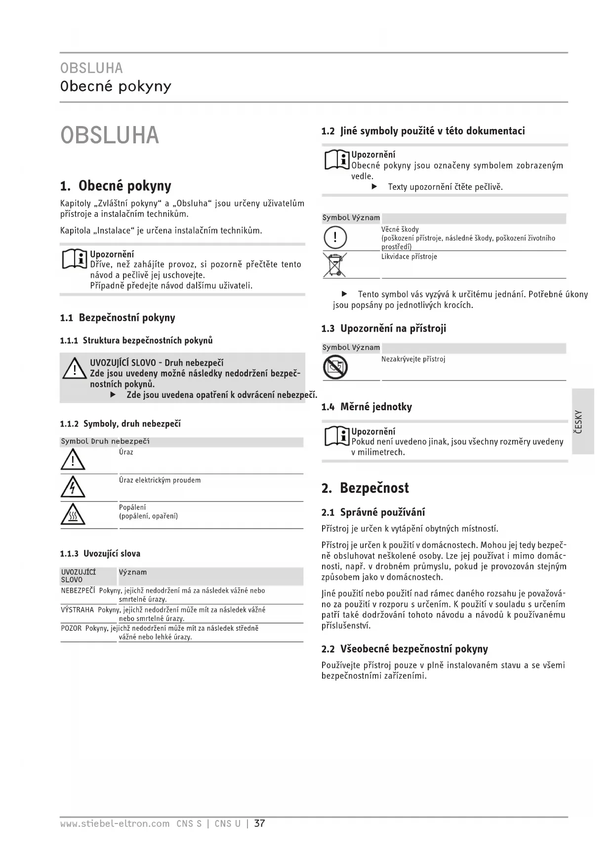 !OBSLUHA Popis přístroje 38 | CNS S | CNS U www.stiebel-eltron.com