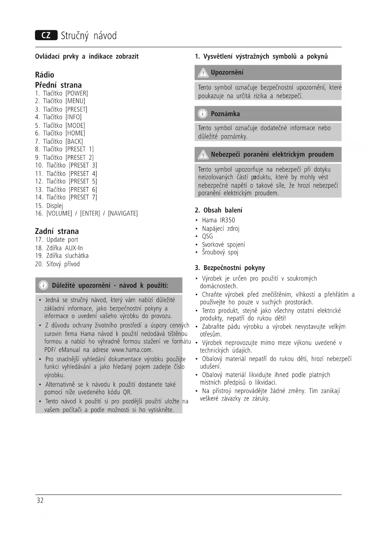IR350 - Radio HAMA - Bezplatný návod k obsluze