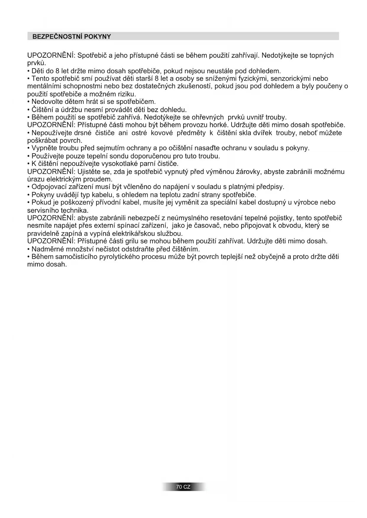 - Trouba musí být použita pouze pro účely, ke kterým je určena: pro přípravu potravin. Jakékoliv jiné použití, př. pro ohřev místnosti, je nesprávné použití a proto nebezpečné.