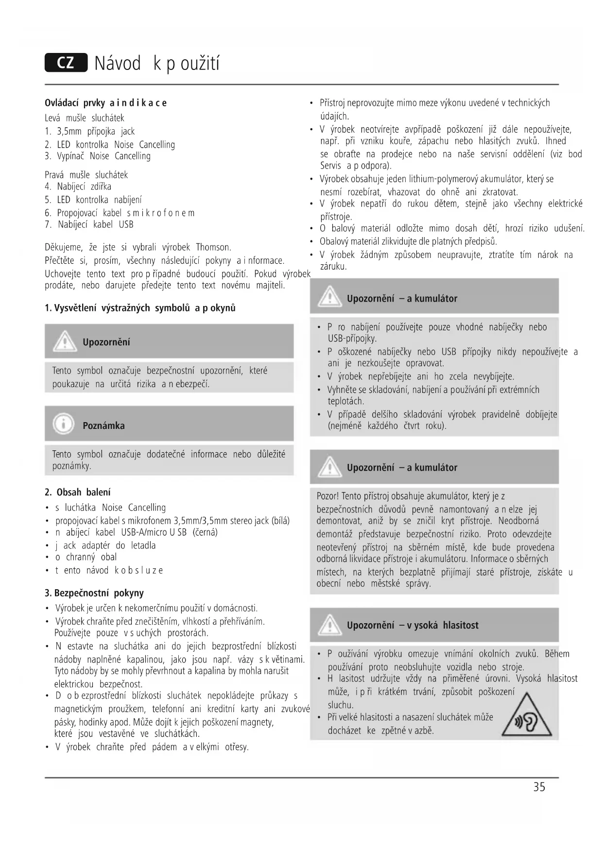Děkujeme, že jste si vybrali výrobek Thomson. Přečtěte si, prosím, všechny následující pokyny ainformace. Uchovejte tento text propřípadné budoucí použití. Pokud výrobek prodáte, nebo darujete předejte tento text novému majiteli.