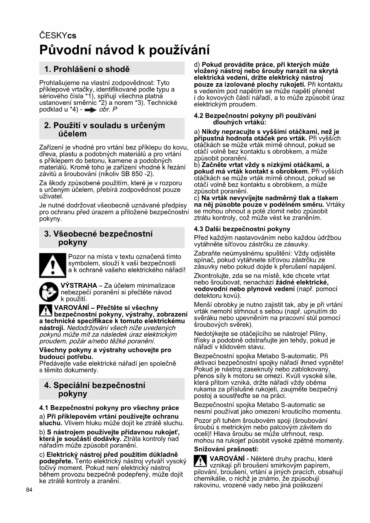 NÁVOD K OBSLUZE SBE 8502 METABO