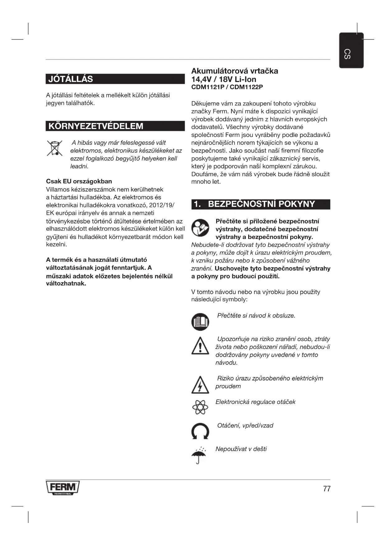NÁVOD K OBSLUZE CDM1122P Ferm
