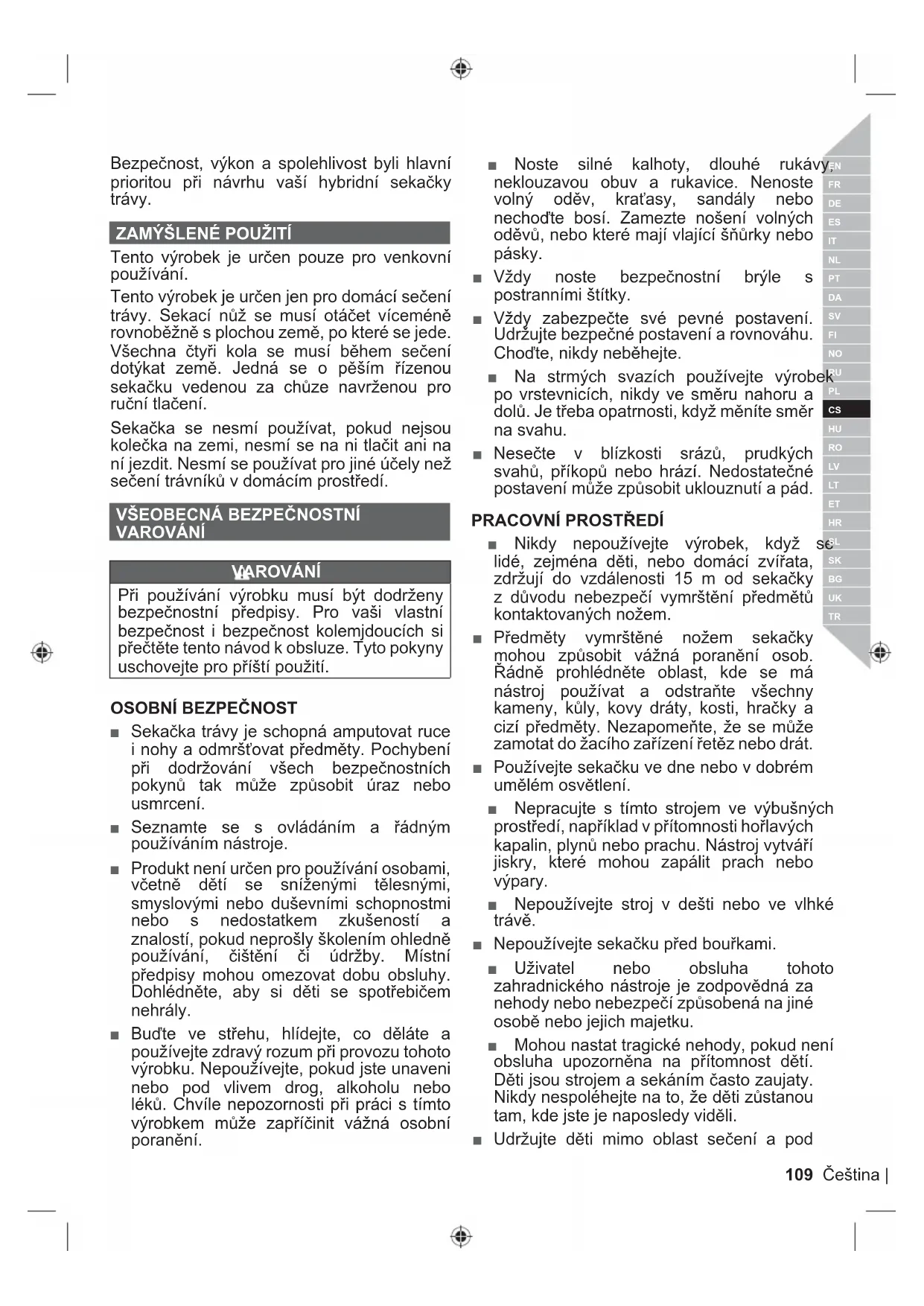 108 | PolskiBezpečnost, výkon a spolehlivost byli hlavní prioritou při návrhu vaší hybridní sekačky trávy.