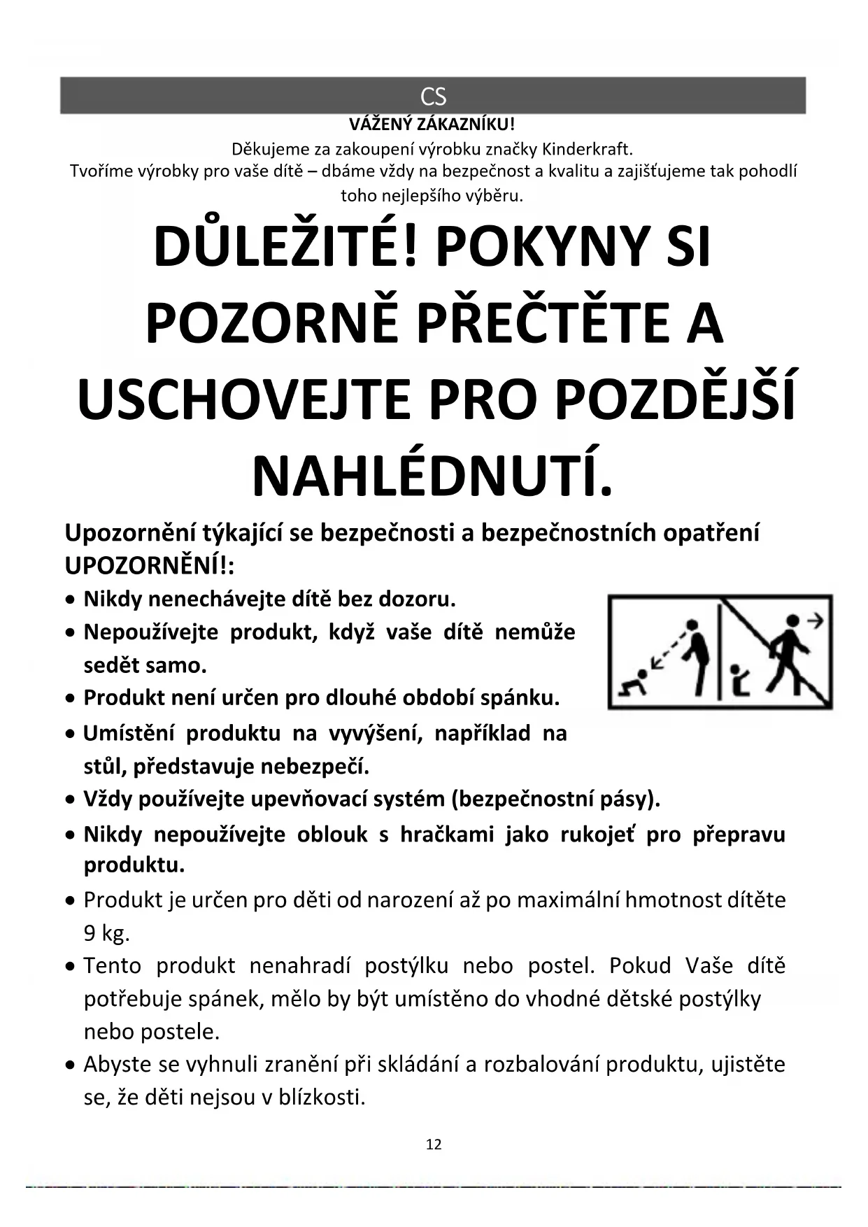 VÁŽENÝ ZÁKAZNÍKU! Děkujeme za zakoupení výrobku značky Kinderkraft. Tvoříme výrobky pro vaše dítě – dbáme vždy na bezpečnost a kvalitu a zajišťujeme tak pohodlí toho nejlepšího výběru.