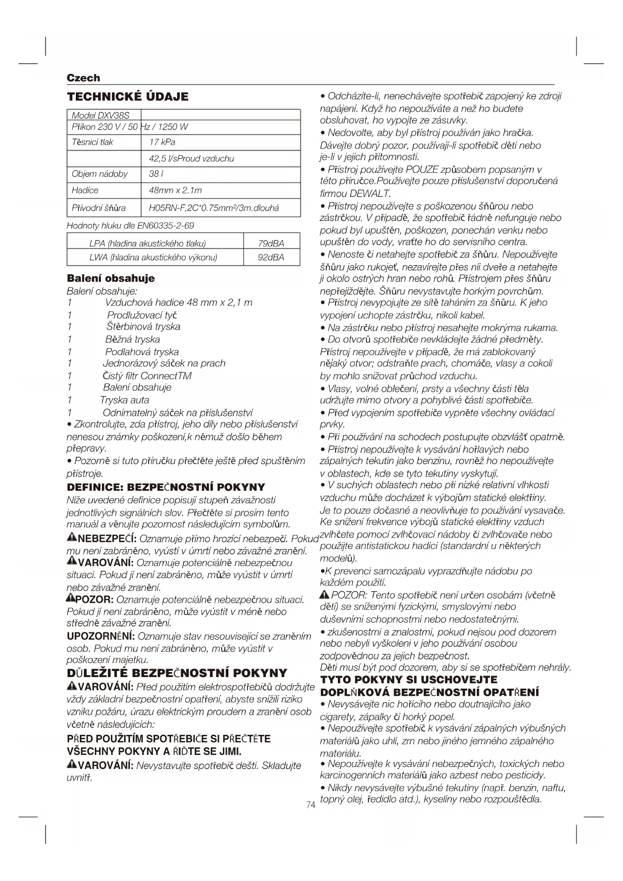 NÁVOD K OBSLUZE DXV38S DEWALT