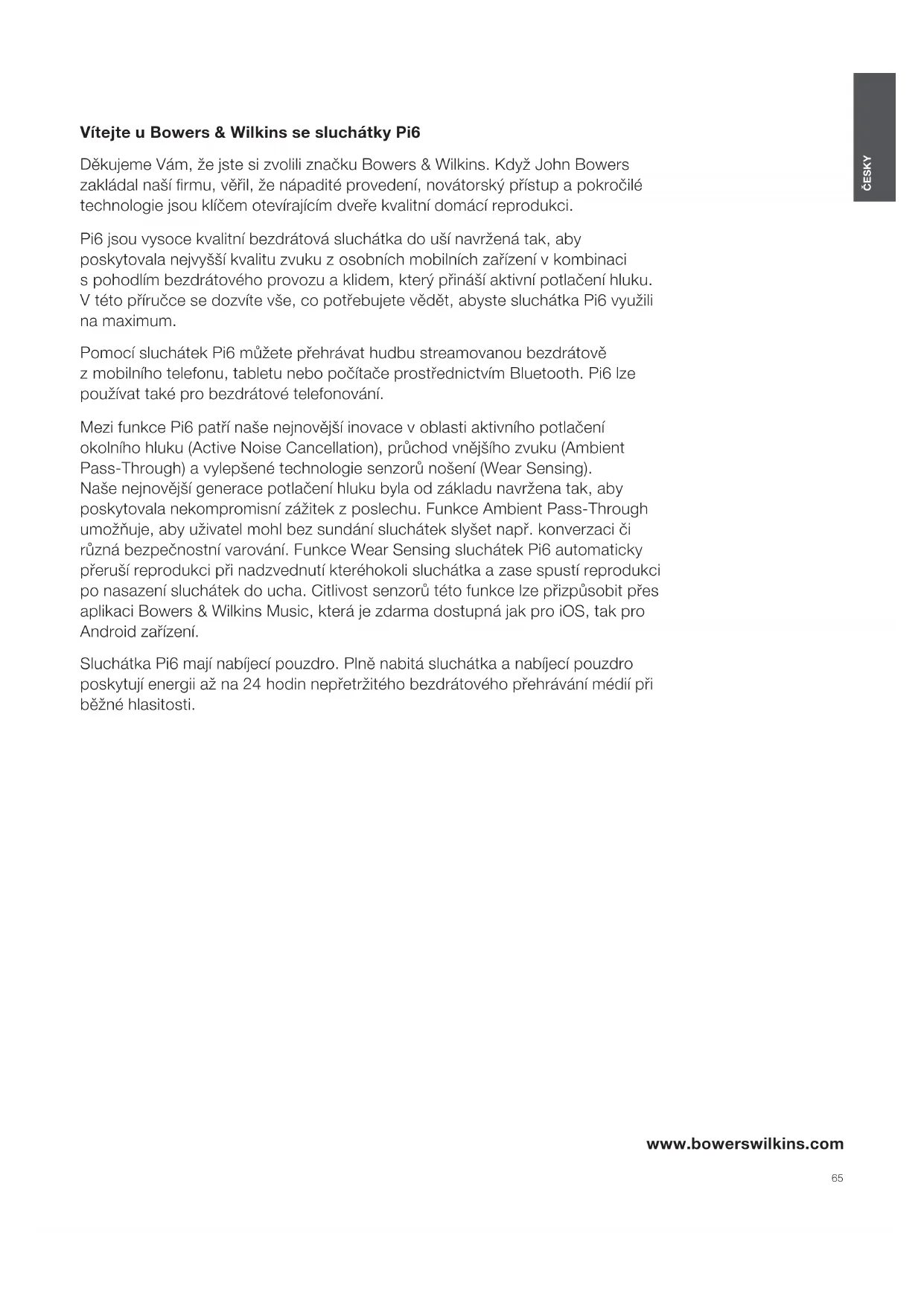 NÁVOD K OBSLUZE Pi6 BOWERS & WILKINS