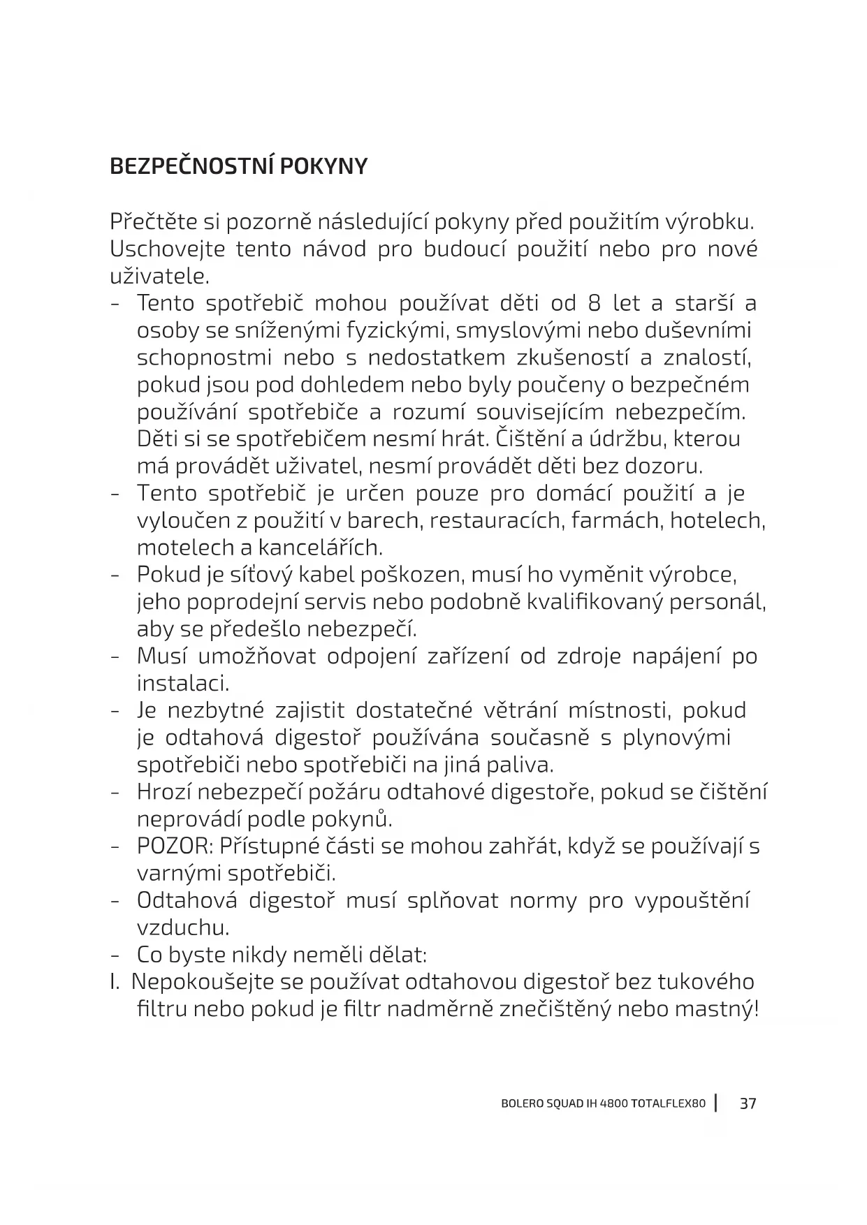 I. Nepokoušejte se používat odtahovou digestoř bez tukového