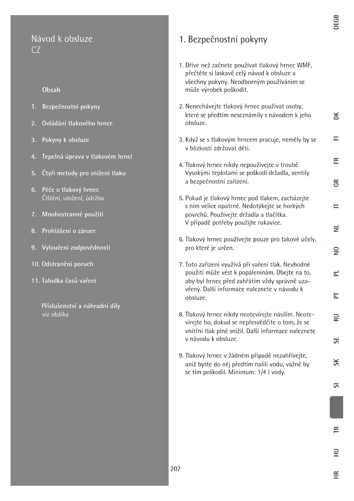 když má poškozené nebo deformované díly a pakliže nefunguje podle v návodu k obsluze. V takovém případě se obraťte na nejbližší odbornou prodejnu WMF nebo na oddělení pro zákazníky WMF AG v Geislingenu/Steige. Tento návod k obsluze si pečlivě uschovejte.209 DEGBESBG DKFI