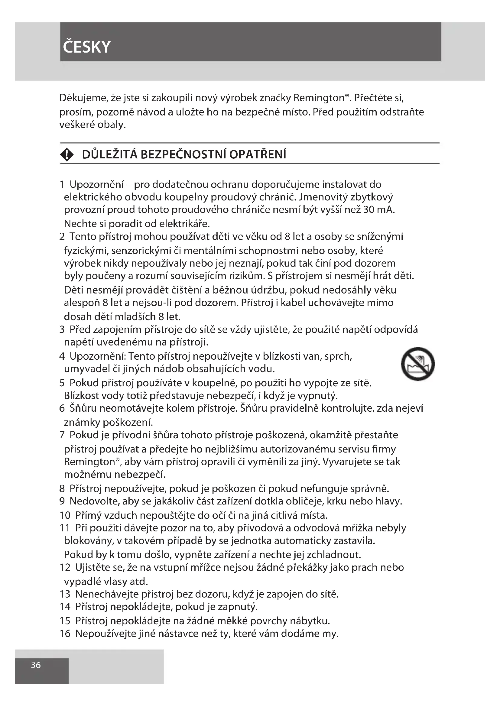 Děkujeme, ze jste si zakoupili novy vyrobek značky Remington. Přečte si, prosím, pozorné námod a uložte ho na bezpečné mistro. Préd použitím odstrante veškeré obaly.