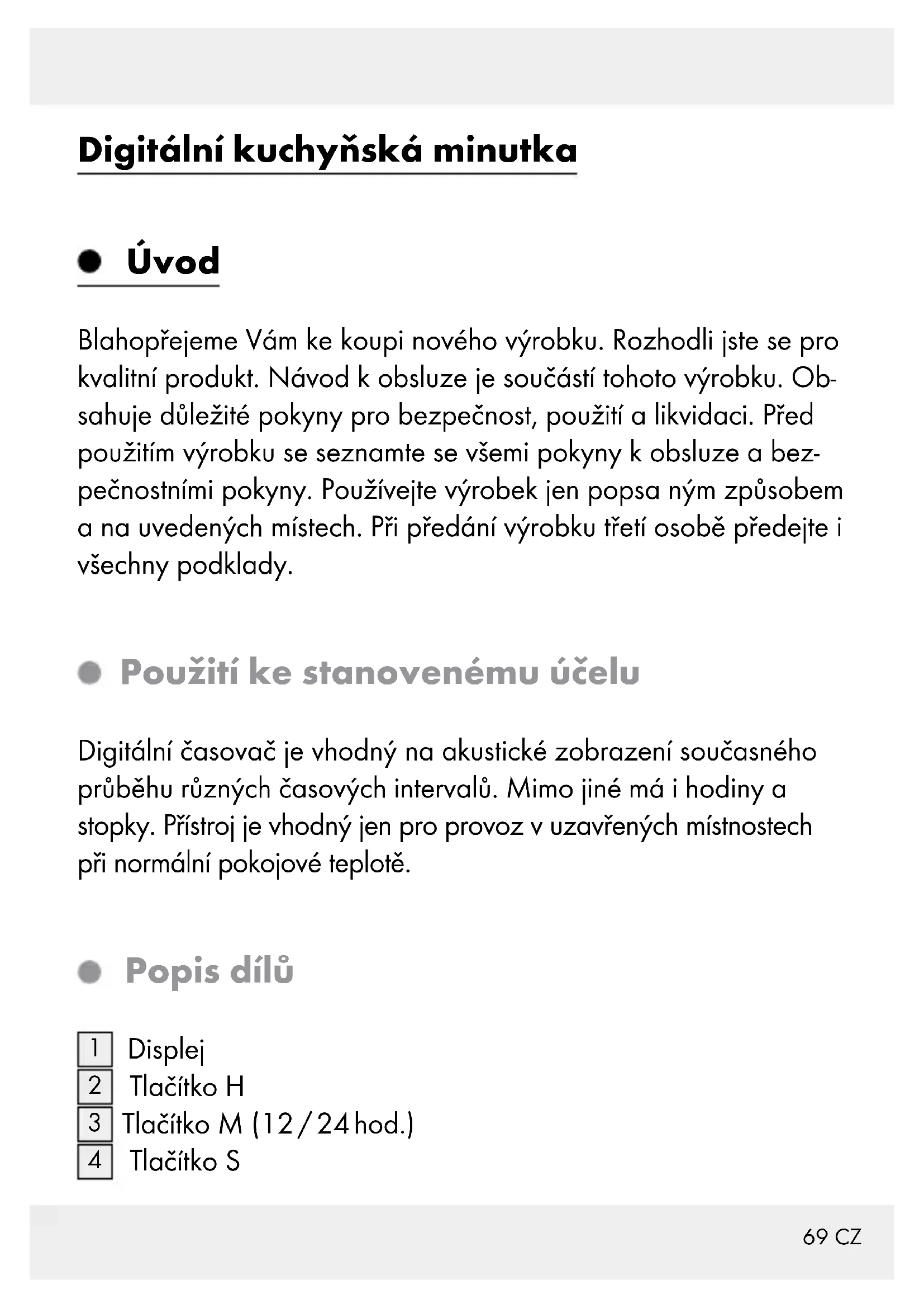 Digitální časovač je vhodný na akustické zobrazení současného průběhu různých časových intervalů. Mimo jiné má i hodiny a stopky. Přístroj je vhodný jen pro provoz v uzavřených místnostech při normální pokojové teplotě.