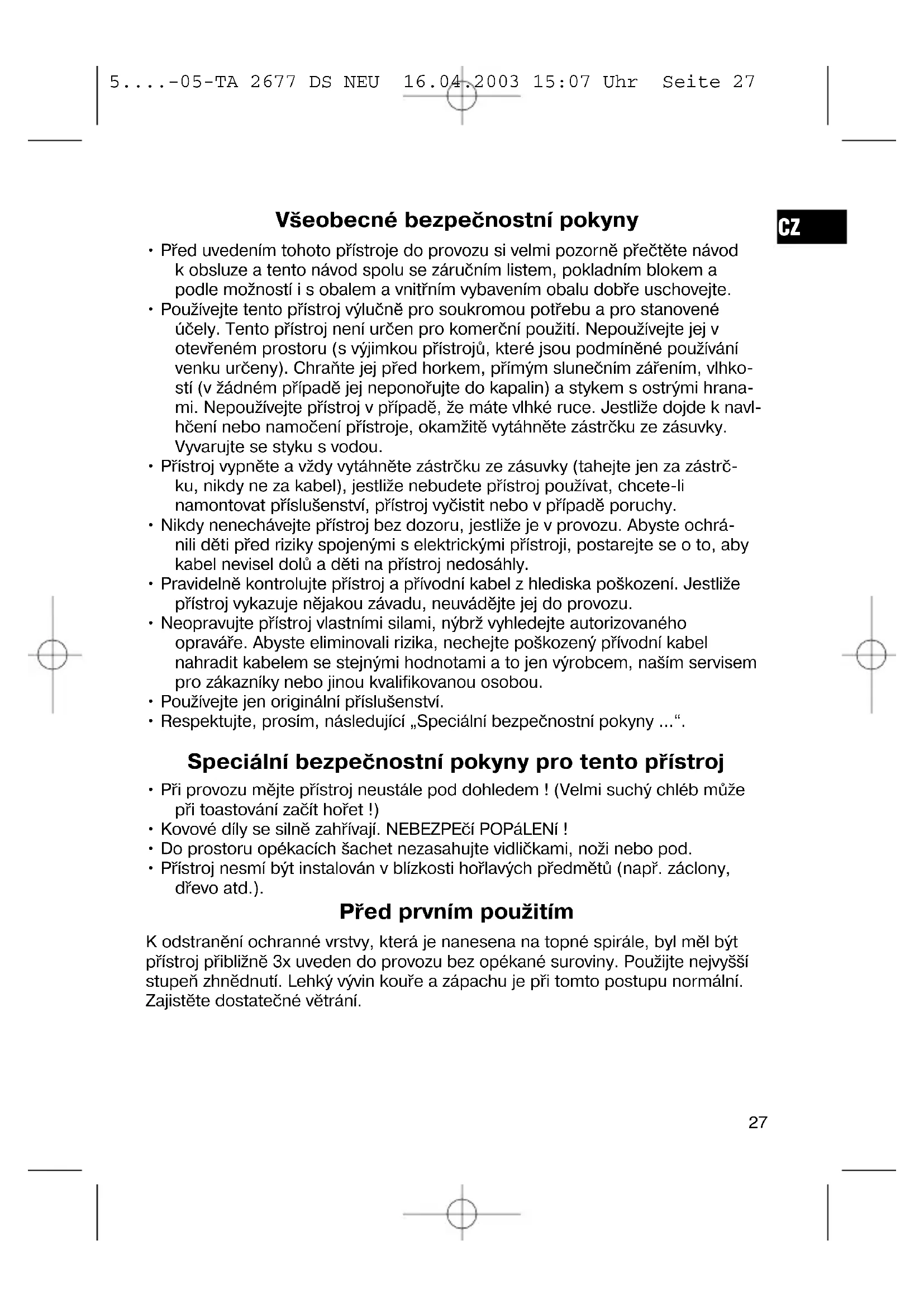 5....-05-TA 2677 DS NEU 16.04.2003 15:07 Uhr Seite 26Všeobecné bezpečnostní pokyny