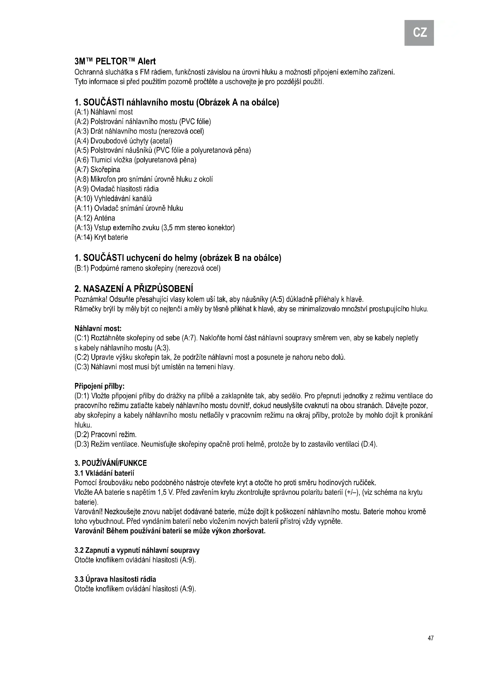 NÁVOD K OBSLUZE Peltor Alert M2RX7P3E201 3M
