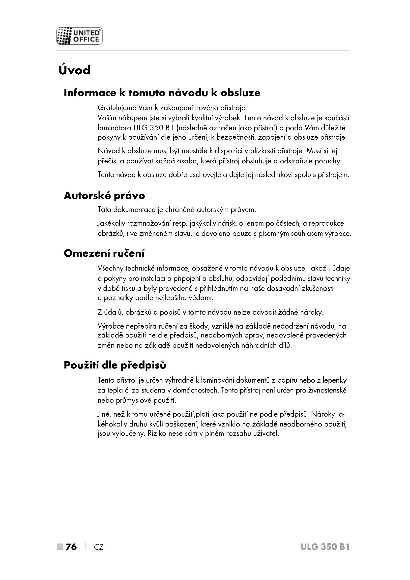 NÁVOD K OBSLUZE ULG 350 B1 UNITED OFFICE