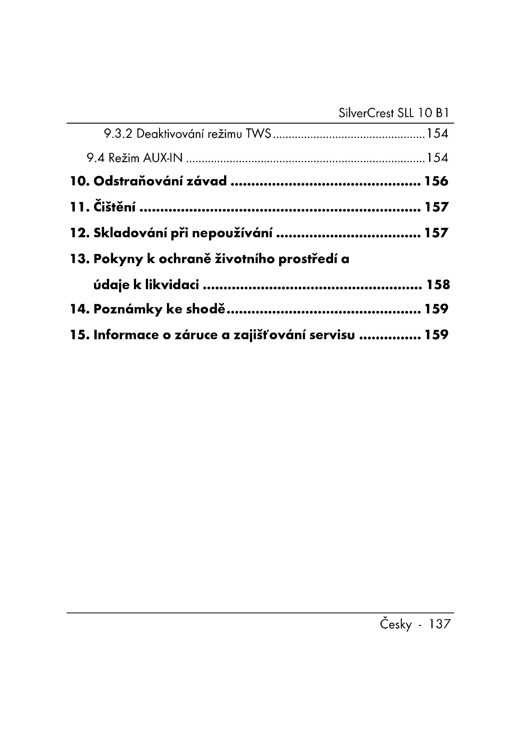 15. Informace o záruce a zajišťování servisu ............... 159SilverCrest SLL 10 B1